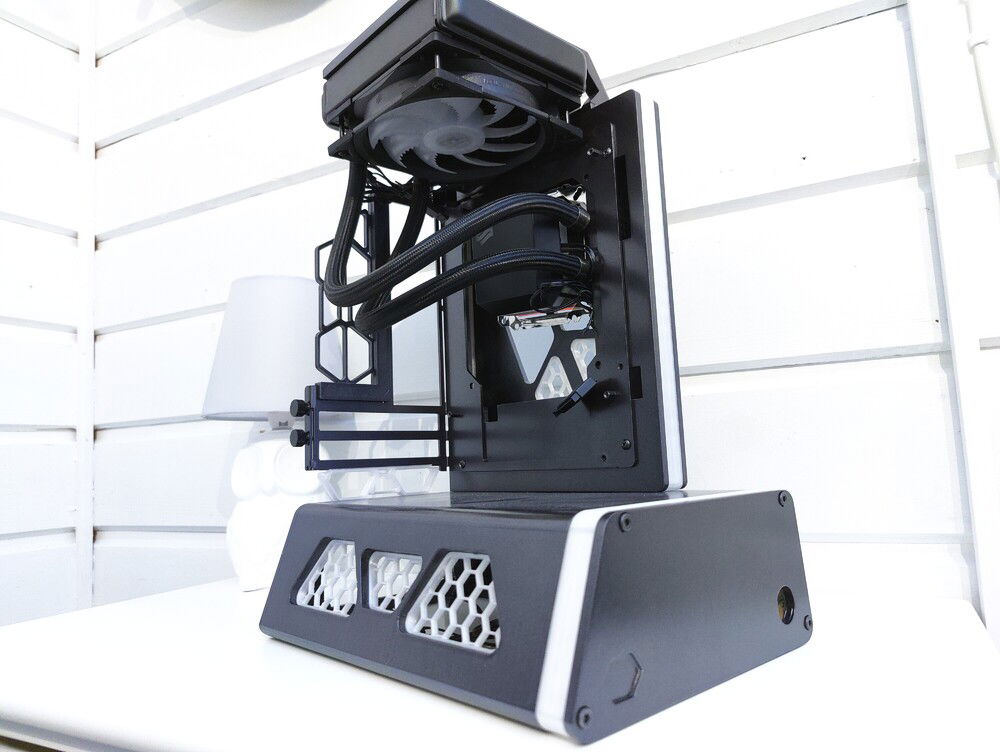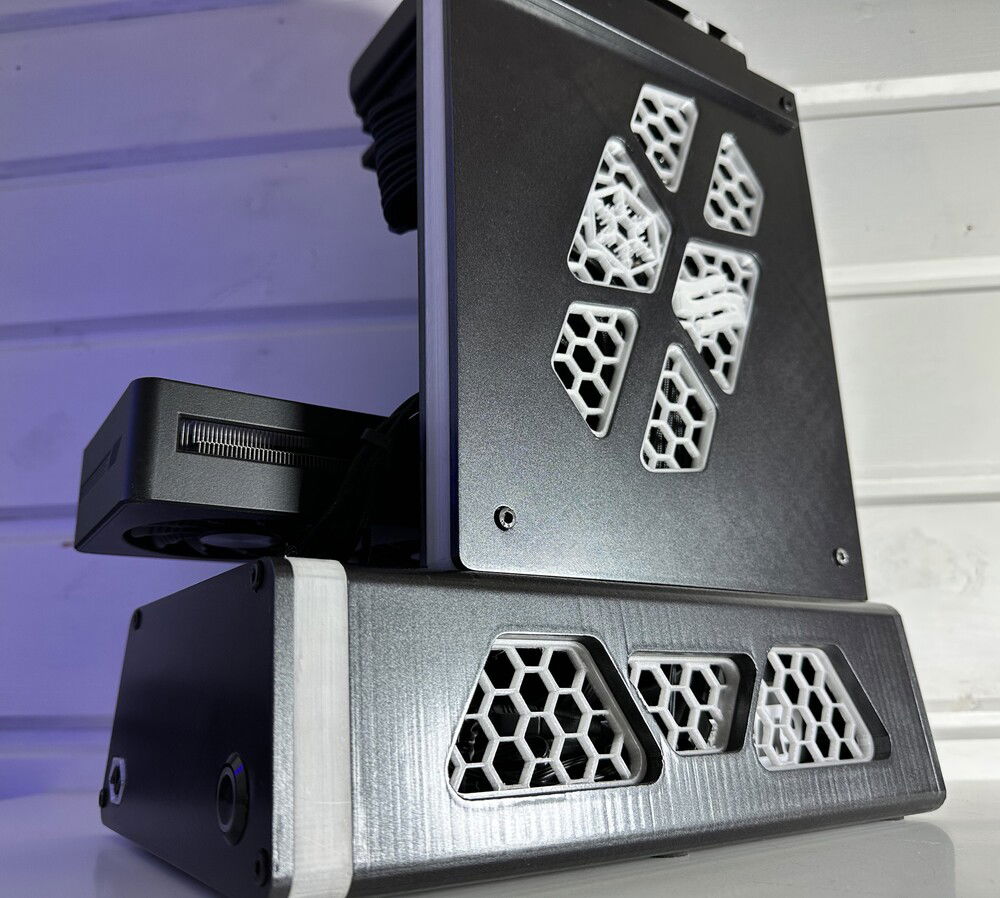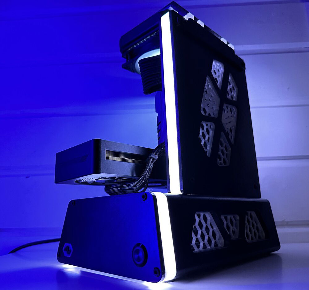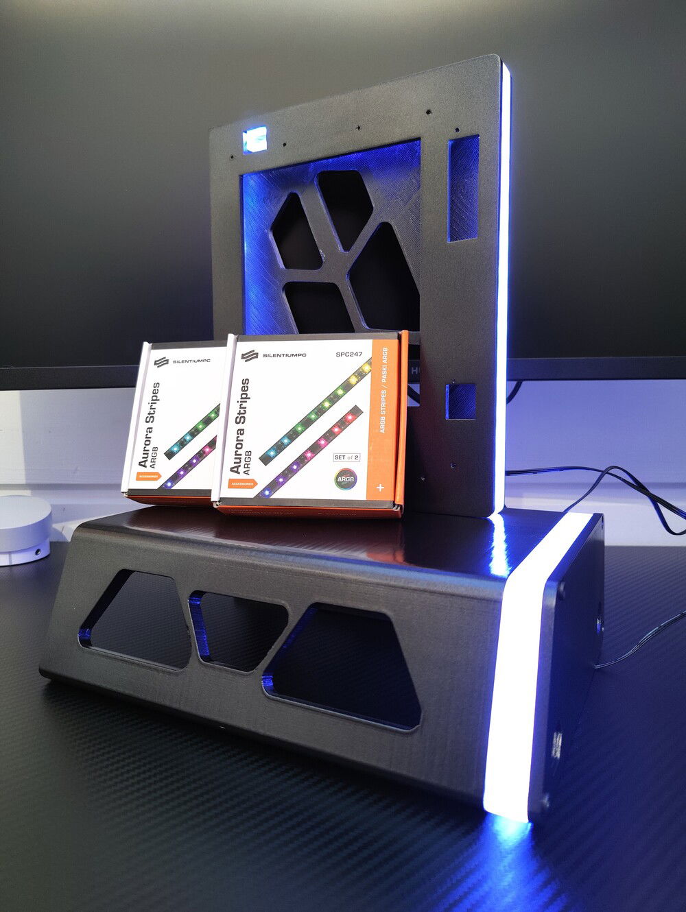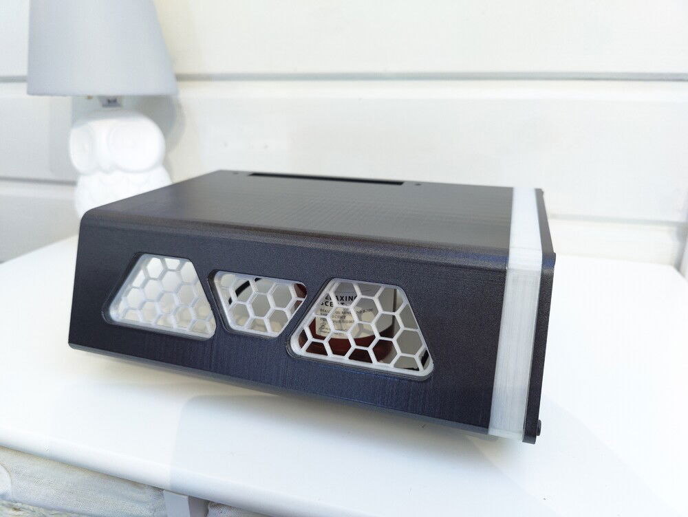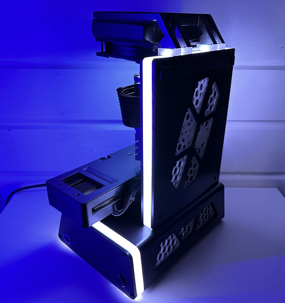 3D printed itx case with transparent panels for rgb lights. My friend did make the aluminium parts for the mb.