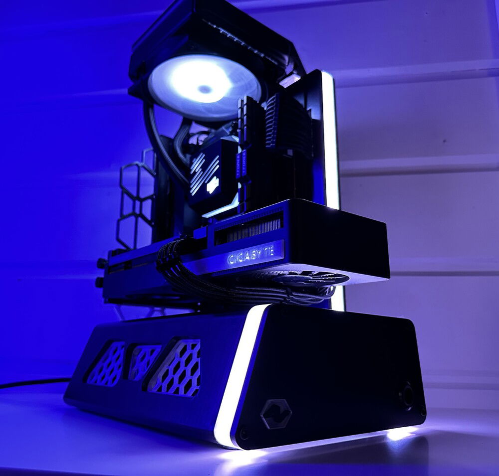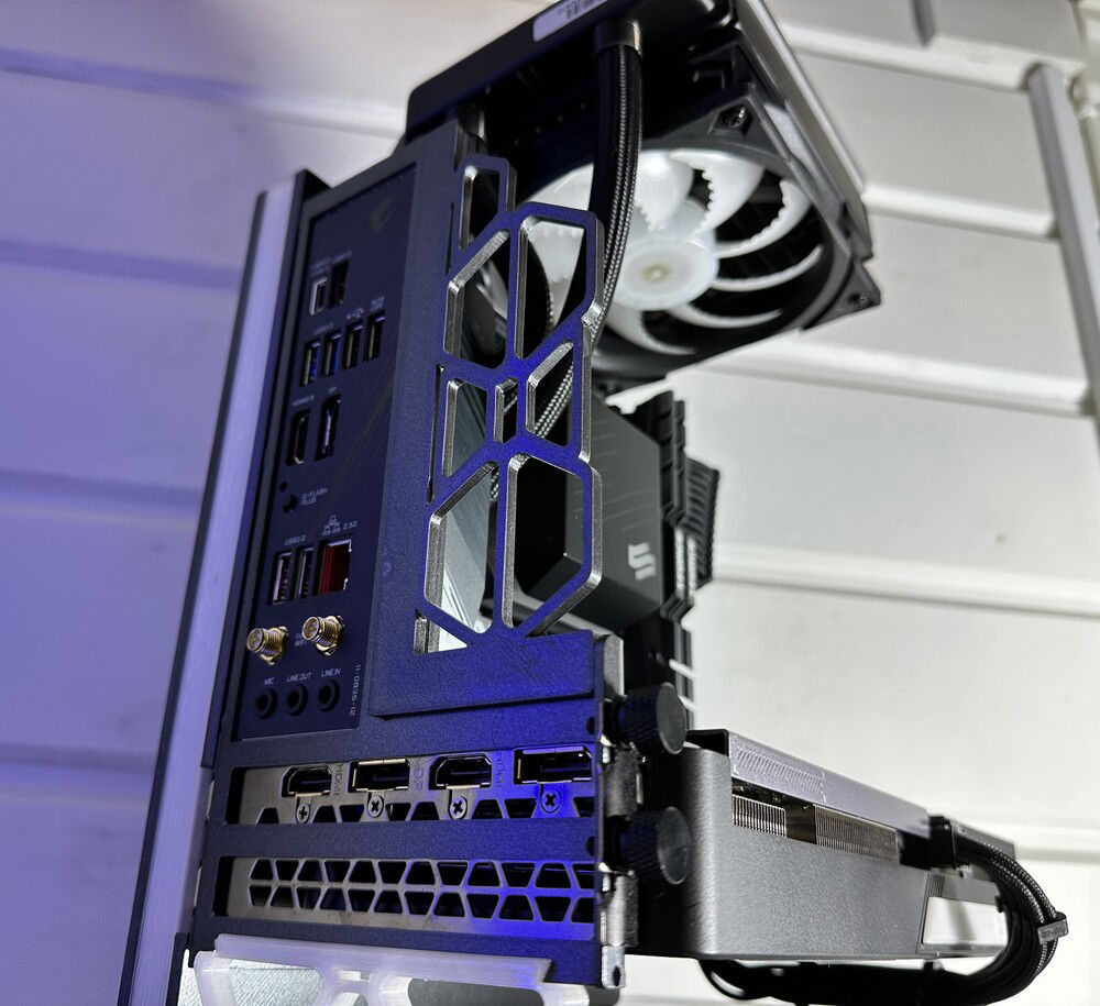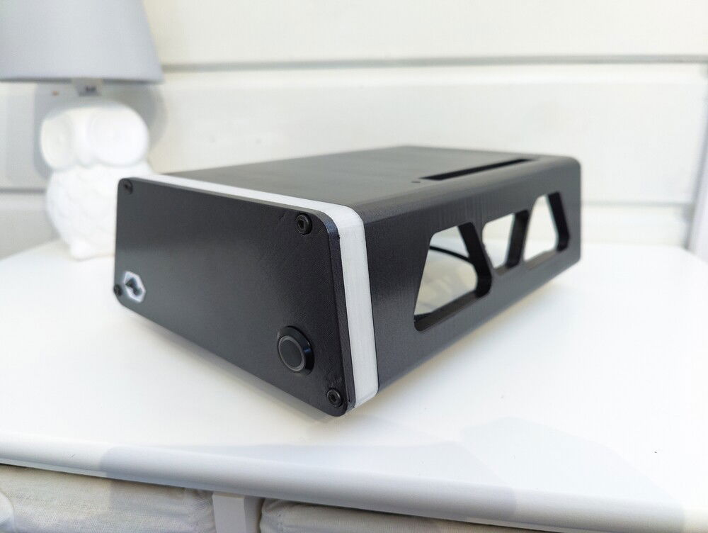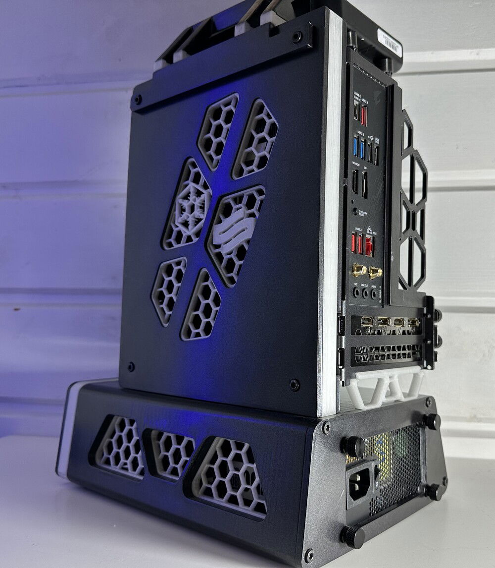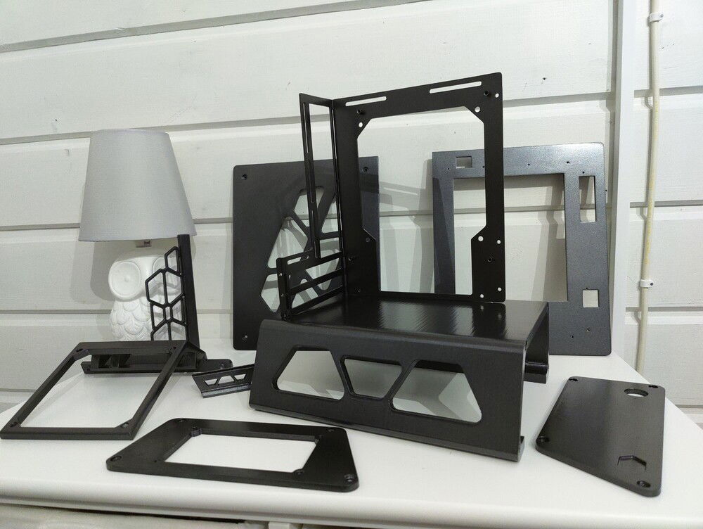 3D printed itx case with transparent panels for rgb lights. My friend did make the aluminium parts for the mb.