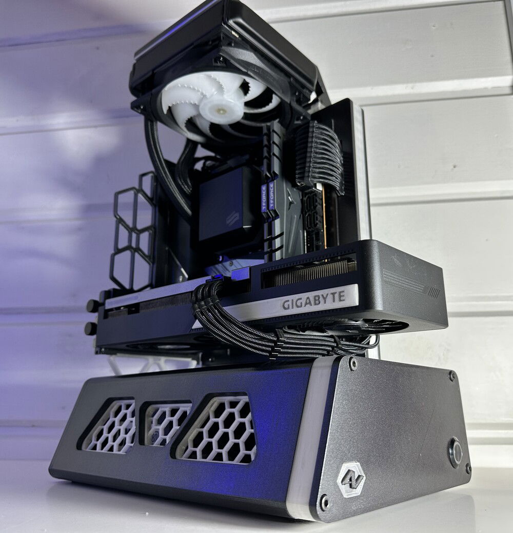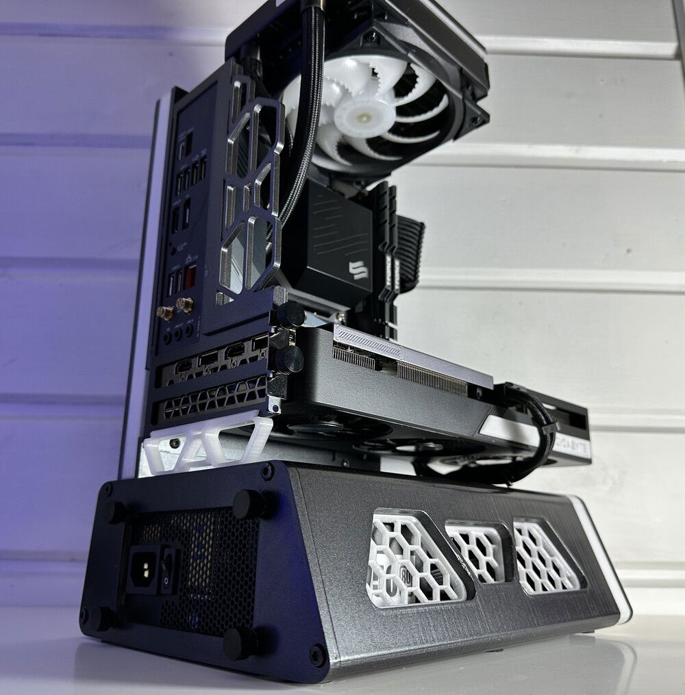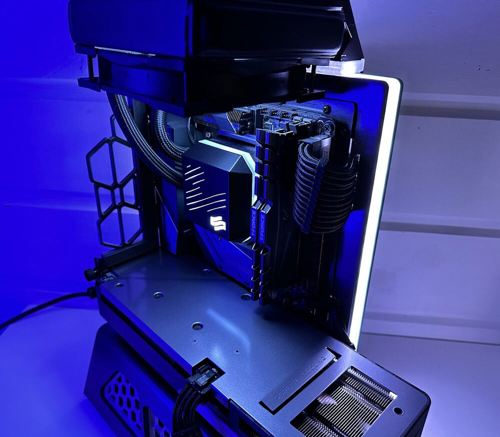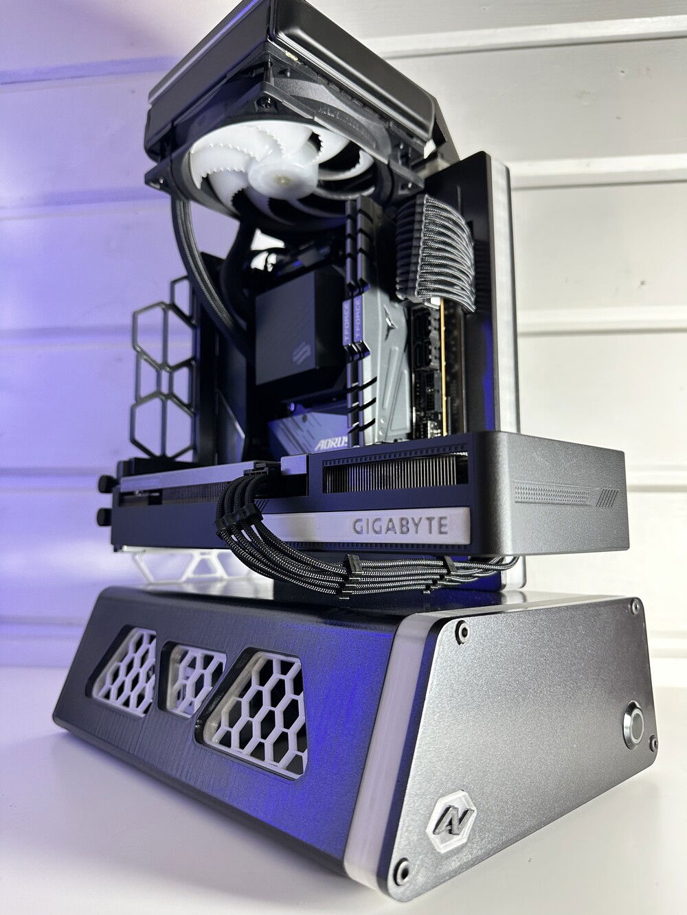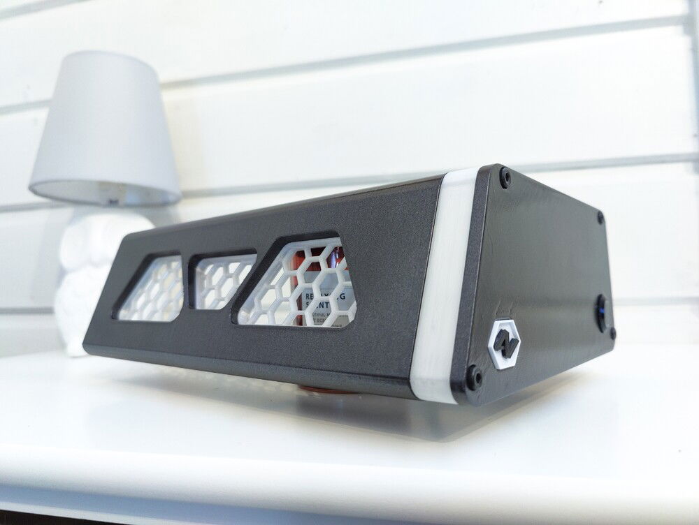 3D printed itx case with transparent panels for rgb lights. My friend did make the aluminium parts for the mb.
