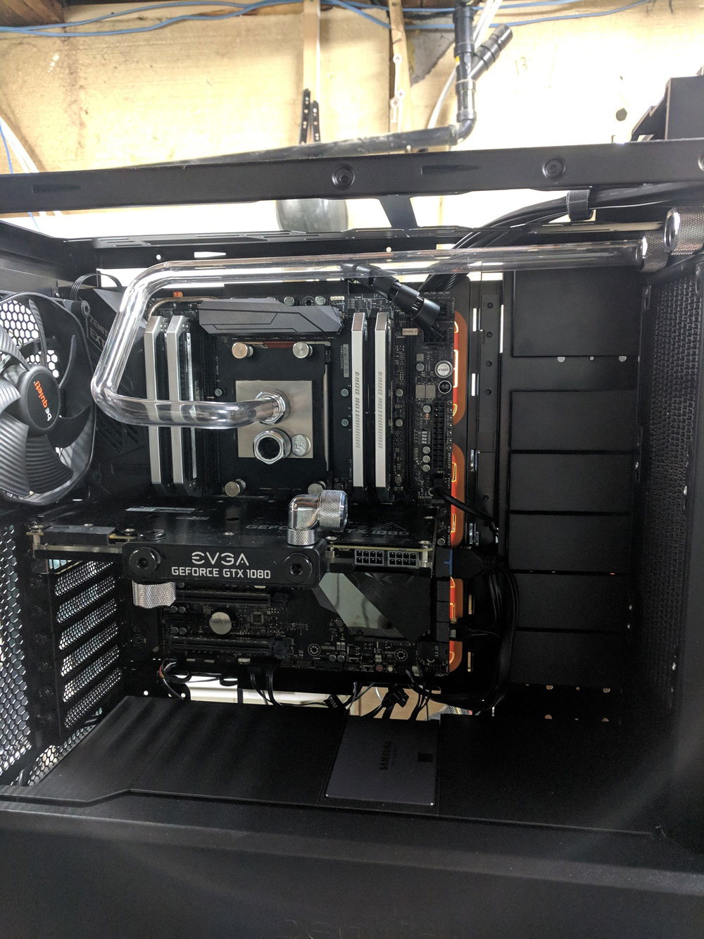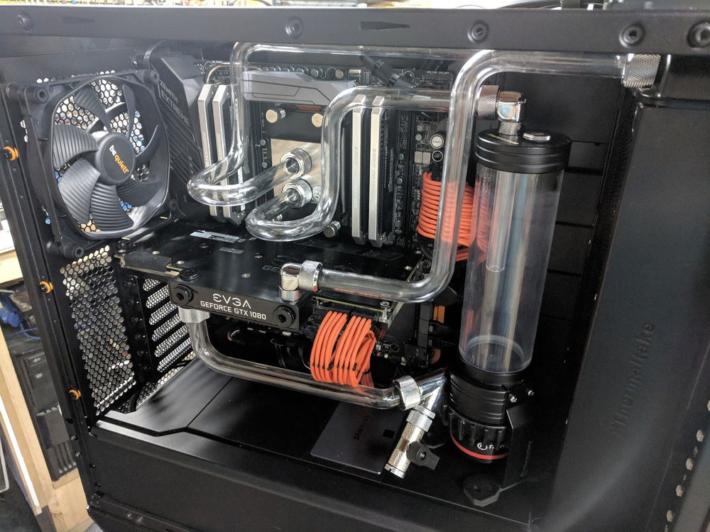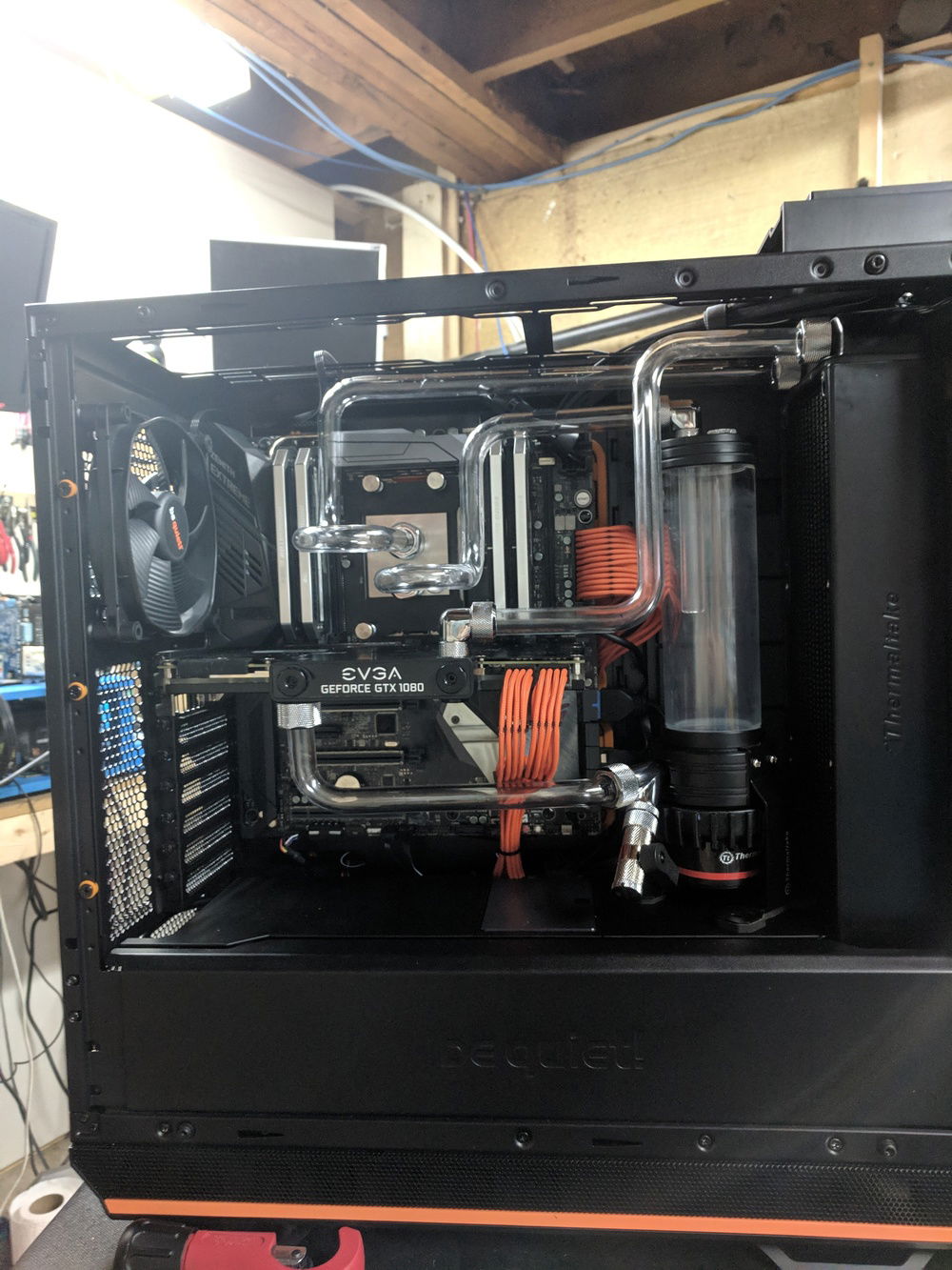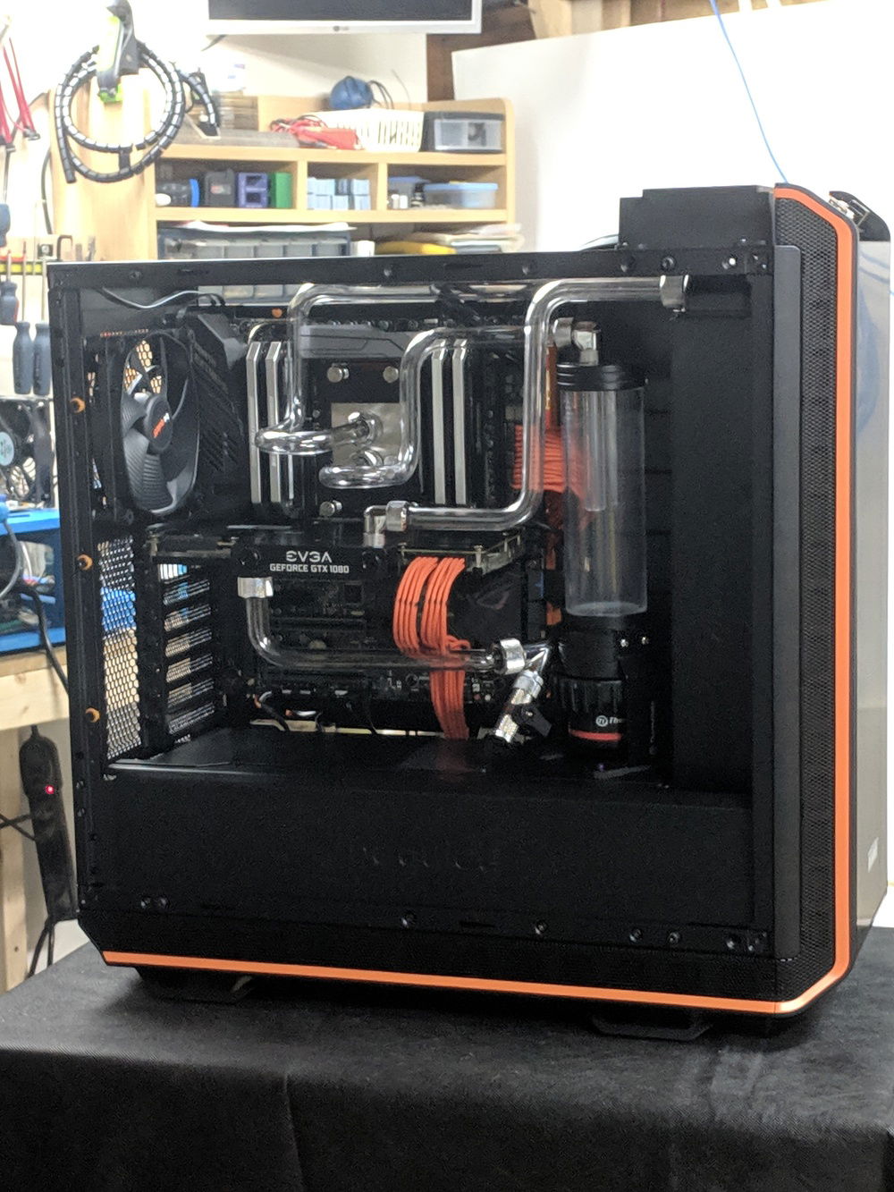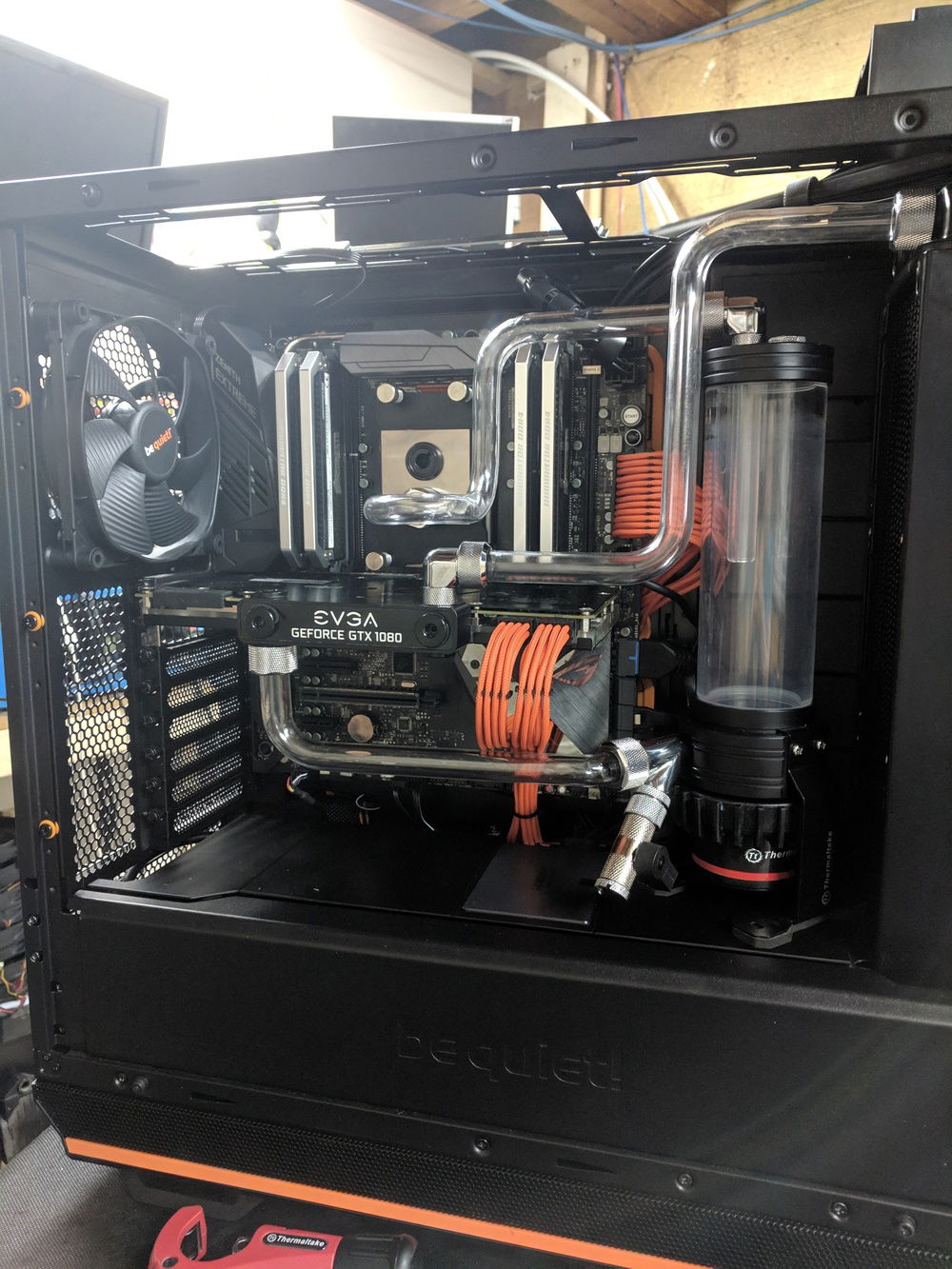This pc is my first hard tube. So this one is very expensive for me. All tube is hard acrylic. I made this build for fun and mix color orange by my self. Same color. you can see it on the case line.