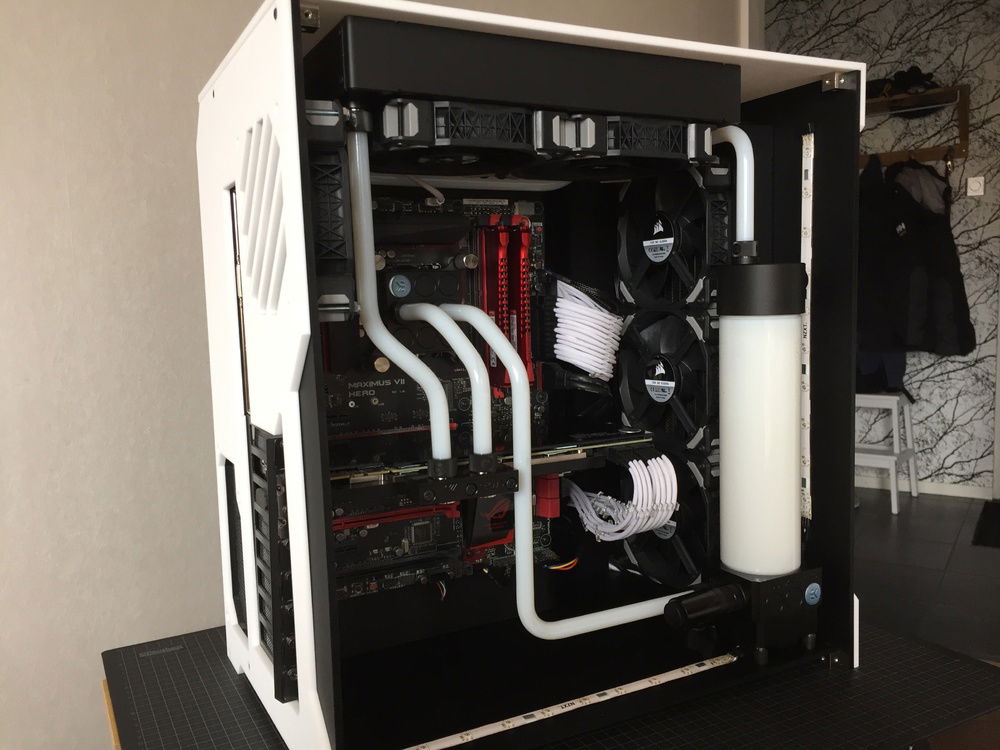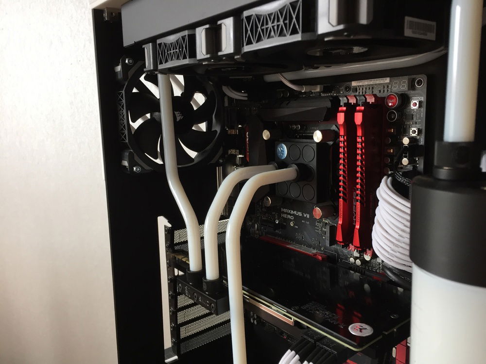 First ever custom loop in a Parvum M1.0 case using PETG tubing. Build not entirely color matched since the water cooling loop was added a couple of months after the PC was first built in 2015. Custom loop built in early 2016.