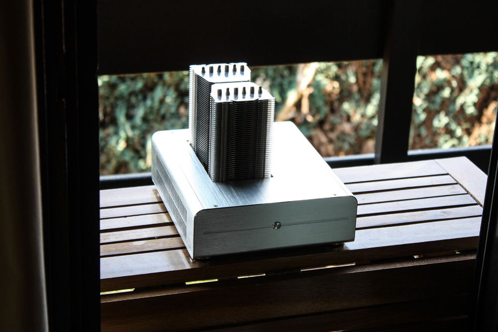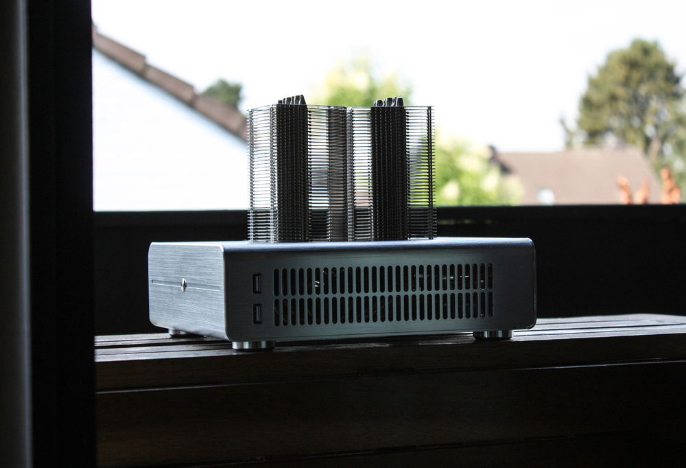 So I grabbed a Prolimatech megahalems a cut a hole to fit it in a ITX case