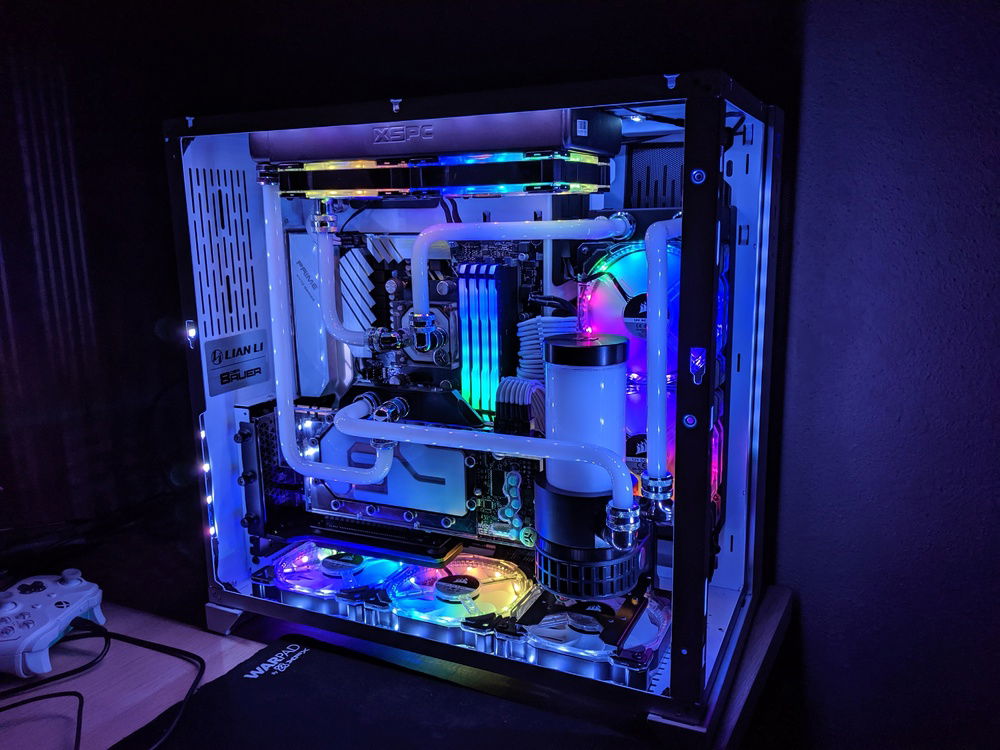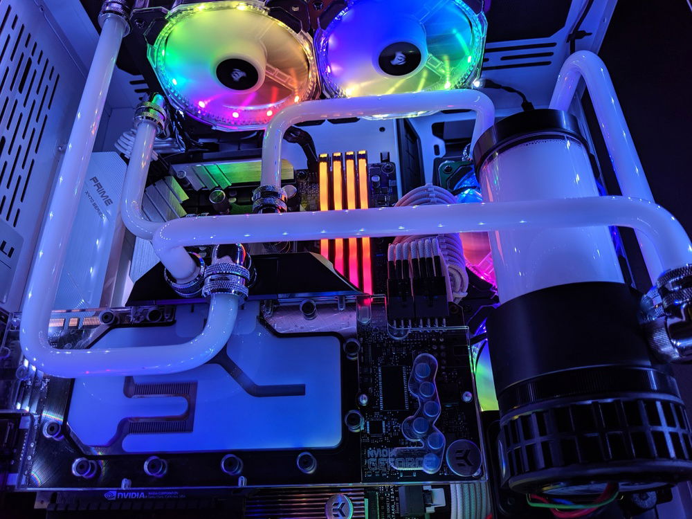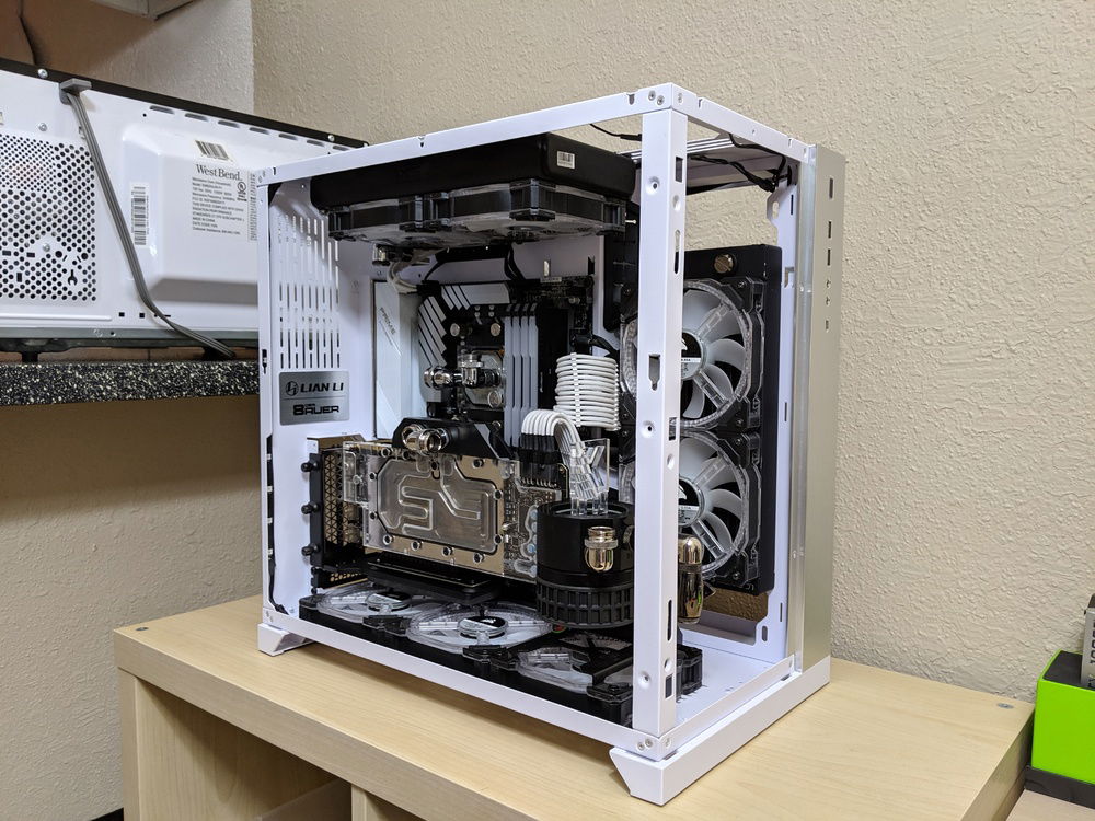 8/29/19 Update: completed Revision 4 of my build, change the way that the GPU mounted. got new PETG tubes installed, Using EK Cryofuel solid white for the fluid this time. XSPC white solid held up great, had it in my system for a year and did not clog up my tubes or waterblocks, I am still using the same hardware from Revision 3, Haven't seen the need to upgrade to third gen Ryzen or 9th gen Intel. My 1080 Ti is going strong and don't see a reason for upgrade yet.