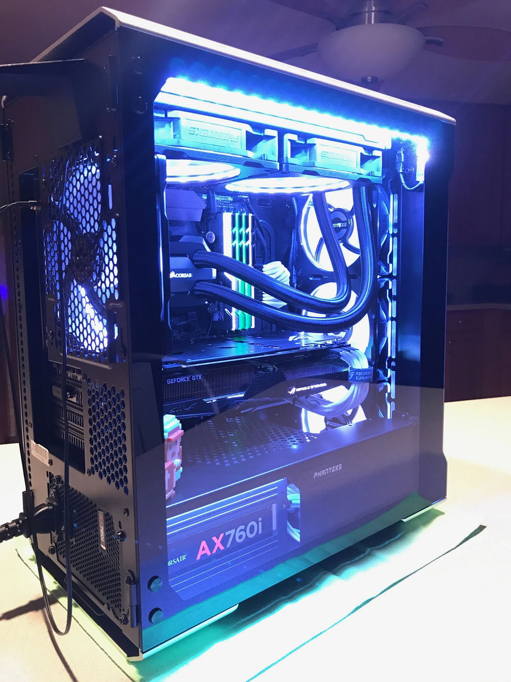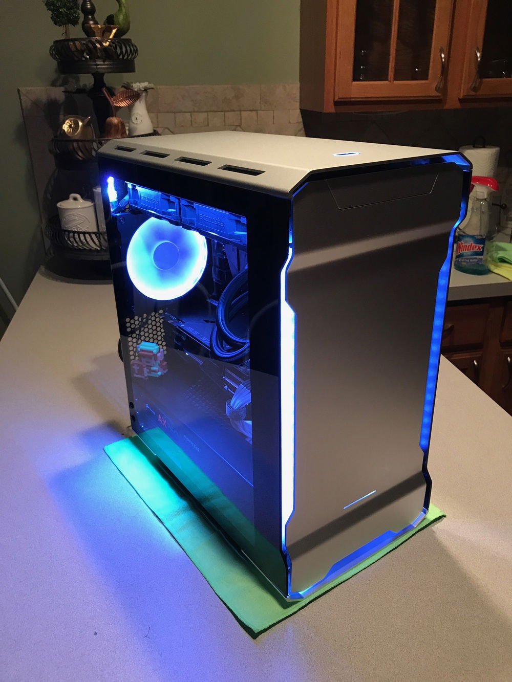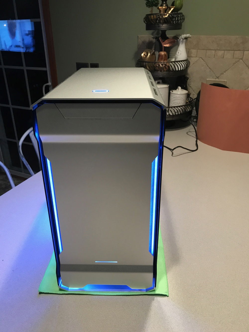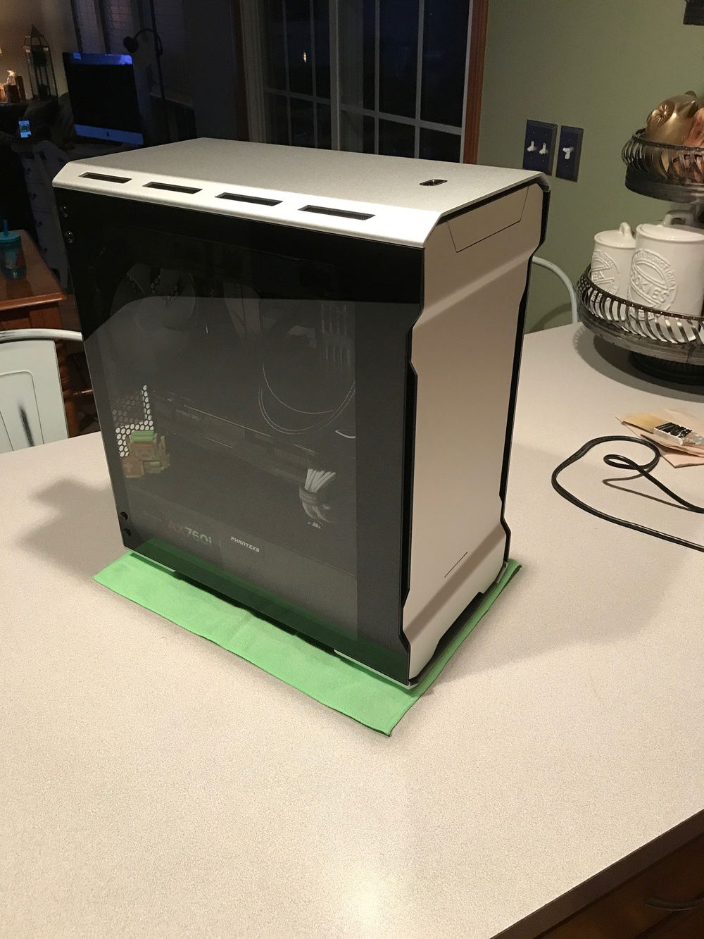 Case: This is what kicked off the re-imaging of this build. Killed off the Frosted clear Parvum S2.5 nightmare of a case and gave rise to this. After a friend sent me a link to a few cases, I started to snowball and came across this case. Its amazing. Best build quality I've seen of a case, the design is nearly impeccable, though it does have a few short comings in regards to airflow and space. It is an mATX case though and those things were to be expected. The airflow out of the top is tough and heavily restricted. The front is also restricted but doesn't seem nearly as bad. The only gripe i have with the case is the thickness restriction of items i can fit in the front caused by the overall depth of the case as well as the PSU cable shroud. They could have left a little more room available if they would have cut the shroud just a little more towards the back. Can't even fit a fan with a halo on it without taking off the removable portion of the shroud. I cannot fit a radiator in the front with the 1080ti and its stock cooler either, the damn thing is massive. If the stock GPU cooler was replaced though a small radiator should fit albeit very tightly. Still just enough room for just about everything else and the SSD and PSU windows are fun. Though, with my cable management I would probably prefer a full glass panel on the back side too so i could show it off. I only wished I had gotten the grey case instead as it would have matched the board perfectly. An oversight on my part. After building in this case, I would highly recommend Phanteks products to everyone, as the quality is top notch.