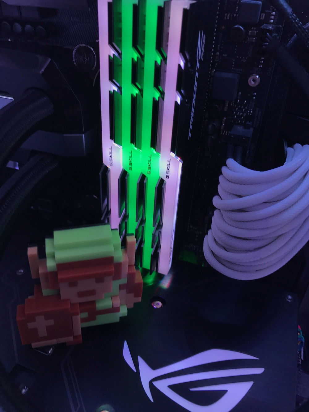 Memory: Nice 'little' kit. RGB. Fast. I'm normally a Corsair brand whore, but I've not liked their implementation of products recently and when I got this RAM, the corsair RGB memory wasn't out yet. I think this set looks way better than Corsair's anyway. Though their new white ones look pretty sharp. Anyway these match the board and timings are good too. No issues so far, they look damn good, and support a bit more options in regards to lighting schemes.