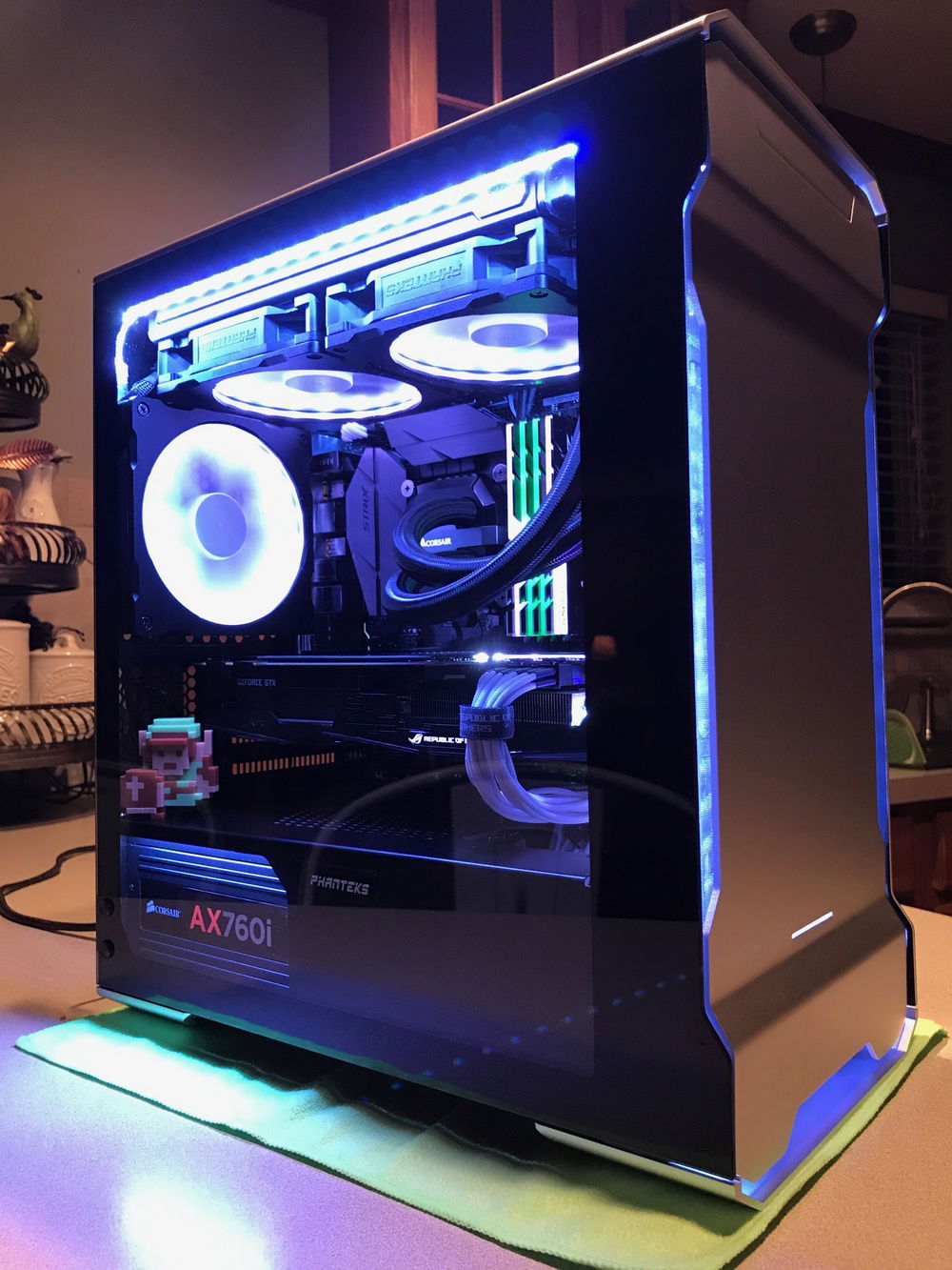 Overall this build was very addicting and I've spent a lot of time tweaking it over the past month or so and finally have it presentable. Most fun I've had putting together a computer ever... and I've built quite a few. I think there's room for more and might dip into the custom loop dept. I'm digging phanteks offerings in that area, as well just kind of waiting to see what comes of their R160 reservior and how i can wedge that in this case too. It will be my first attempt at a custom loop. And if your ever using any liquid metal paste, be careful. That shit gets everywhere. I've got some not so fun stories about that stuff getting into the all the wrong places.