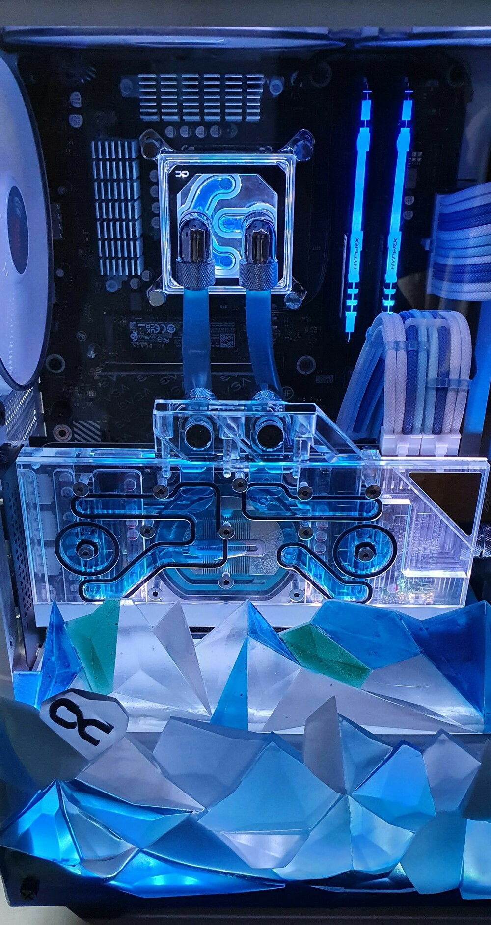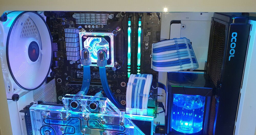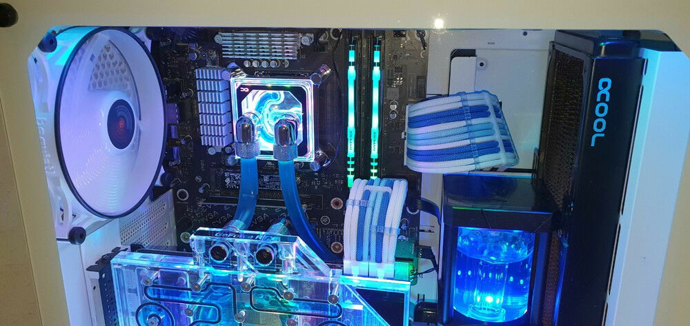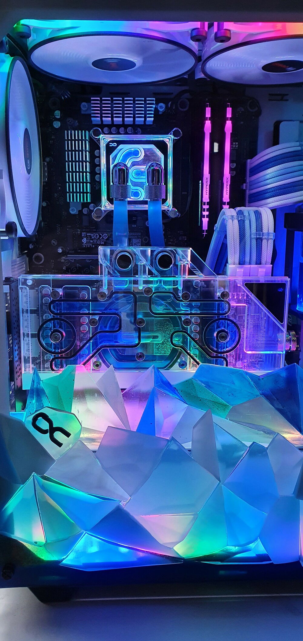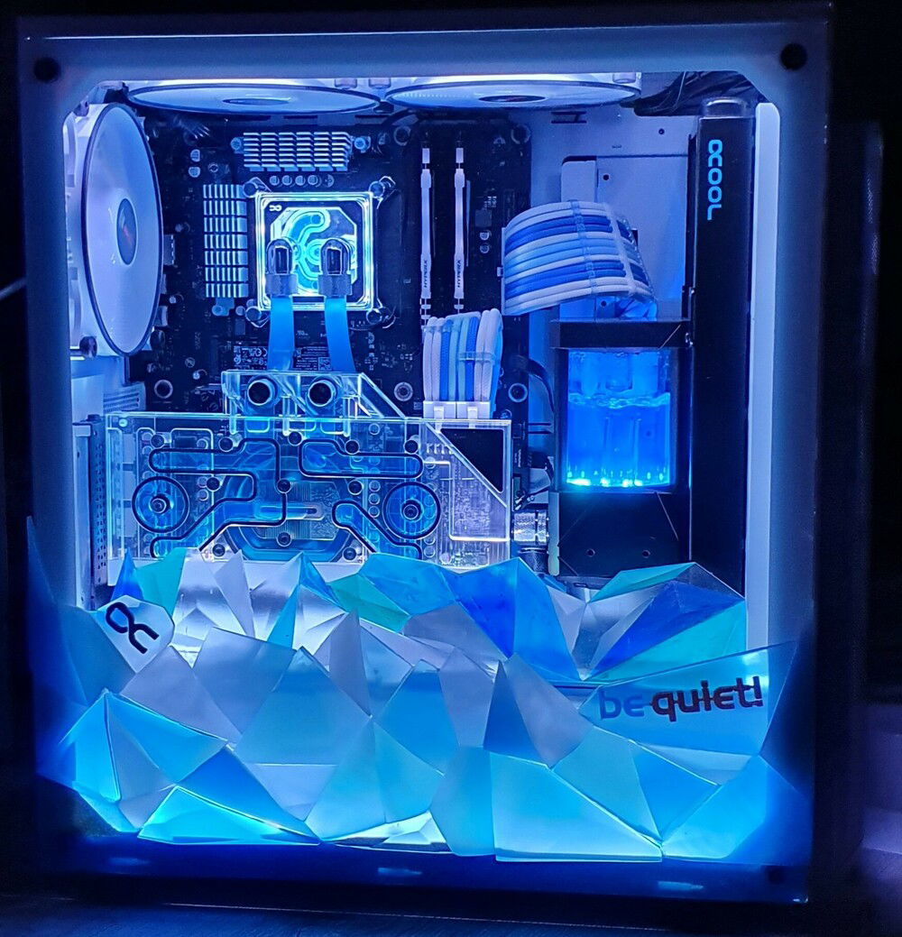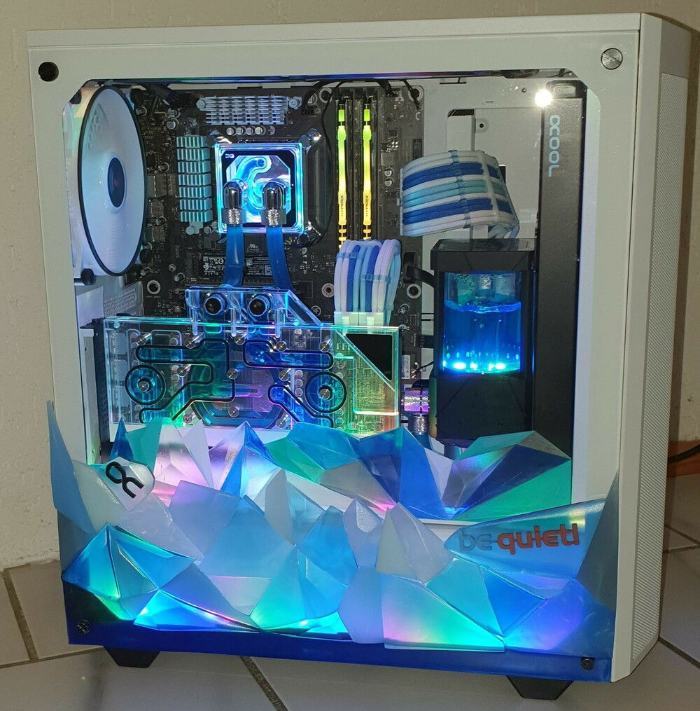 Watercooling is fully sponsored by Alphacool and BeQuiet made the project possible by providing me with case, psu and fans.