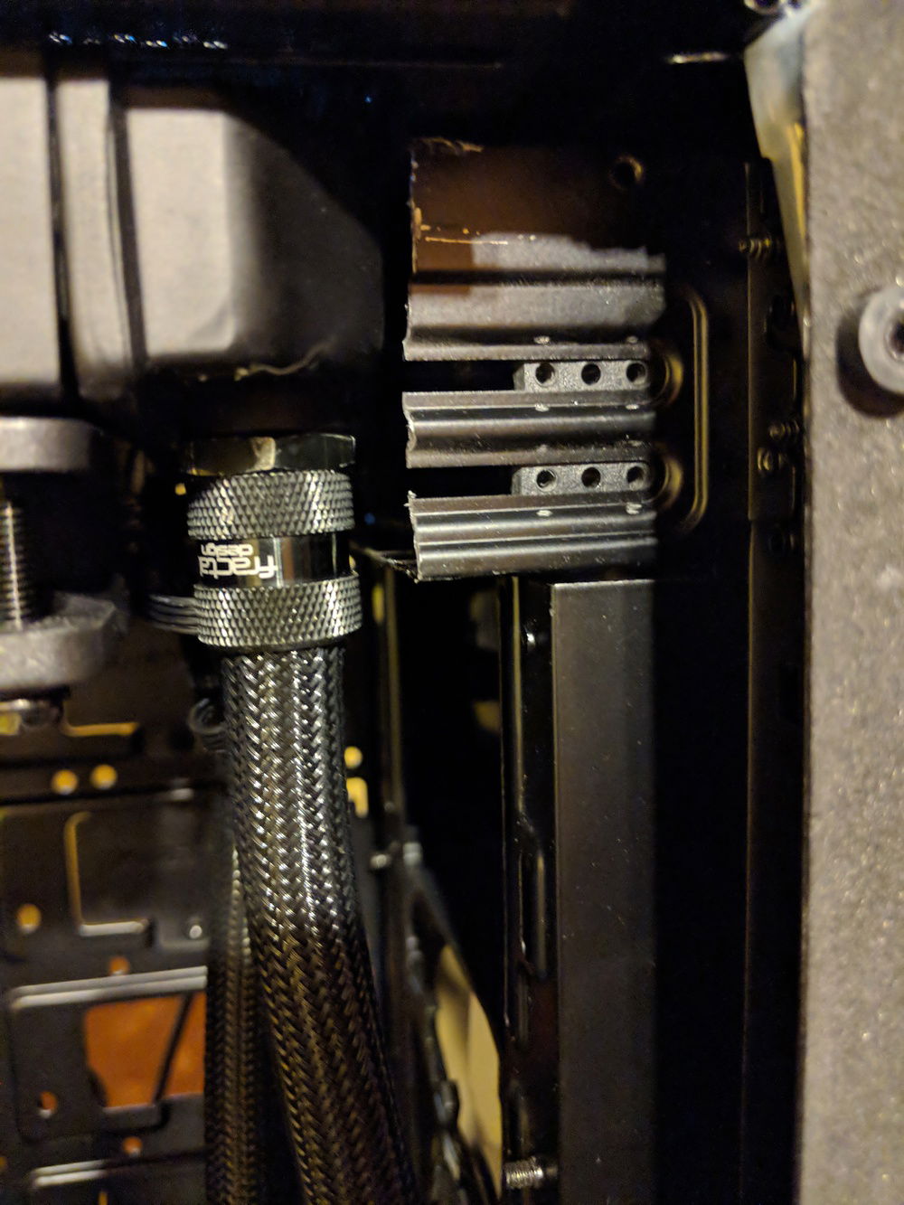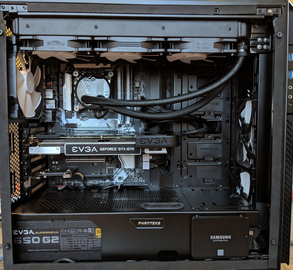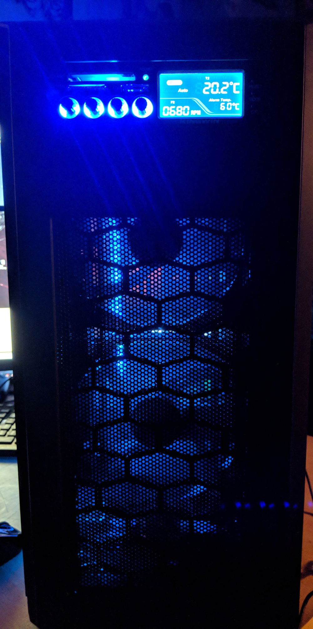 This was my first attempt at building. It was done in summer 2018, when at the time many of these parts were second/third tier availability. I kept it modest but didn't want to skimp too much. Cable management was clearly lacking, but I'm pleased with my parts selection and the balance of them all. Modifying the ODD cage was a pain, but I was really committed to the full length rad and the fan controller. I liked the analog feel that it added.