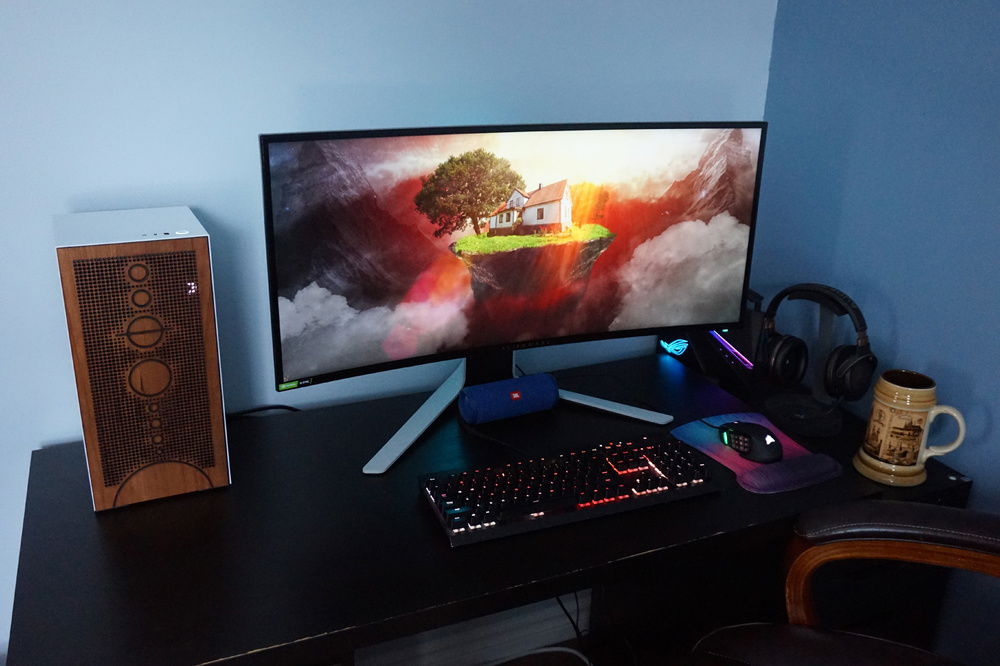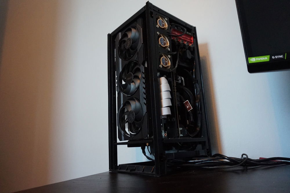 Custom additions: Wood front panel from Artisianbuilds.com, 40mm fan bracket from Etsy and white Pcie 4.0 Cable from Linkup (that will not catch fire).