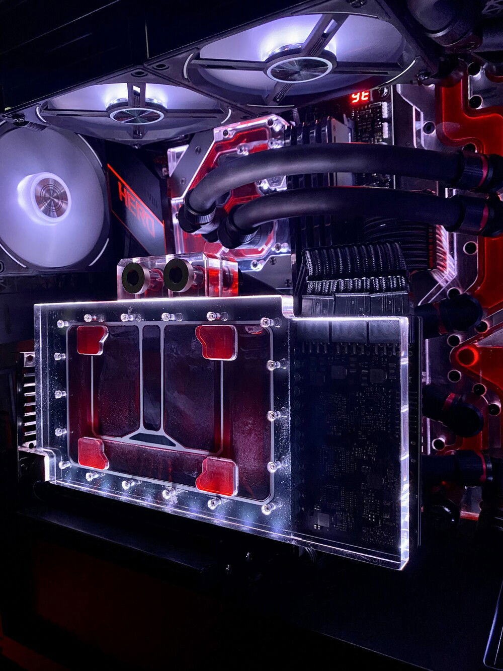 I initially had an EKWB Strix block (1st gen) but cracked the acrylic at the terminal due to over-tightening two screws. I opted not to replace it with another EK block and got the Optimus water block because of its aesthetic, build quality, and performance. Although the company is known to have poor CS and delayed shipping times, I took a risk, bought it, and waited only six weeks for it to arrive. I have no regrets and am not disappointed in the slightest. I stuck an NZXT underglow strip from my previous build and stuck it in between the GPU mount and water block to block to illuminate it.