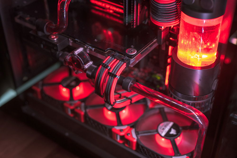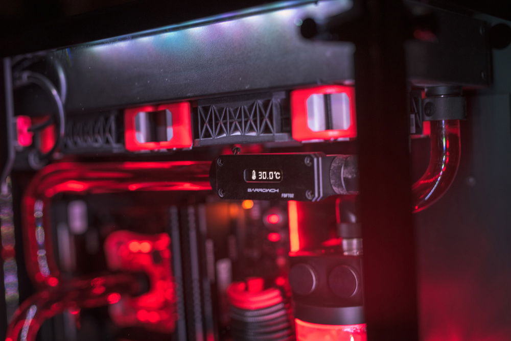 Project Aloy - Started this build in June 2018 as i managed to get the Lian Li PC-011 WGX case. Spent around 2 weeks building it and testing it. Most of the Loop parts are from EK (Radiators, Pump res combo, Fittings, Angled Adapters, GPU Block). CPU Block and the Flow indicator are from Bitspower and the Water temp sensor made by Barrow. Cables are CableMod PRO Cables red black and carbon color (blends nicely with the build). Also did a mini 5 inch display mod with a frame to show pc info like temps and such, covered the back radiator and fan mounts with a 3mm plexi and behind another 3 mm aluminium that is mounted with the fan holes to support the pump with the res.