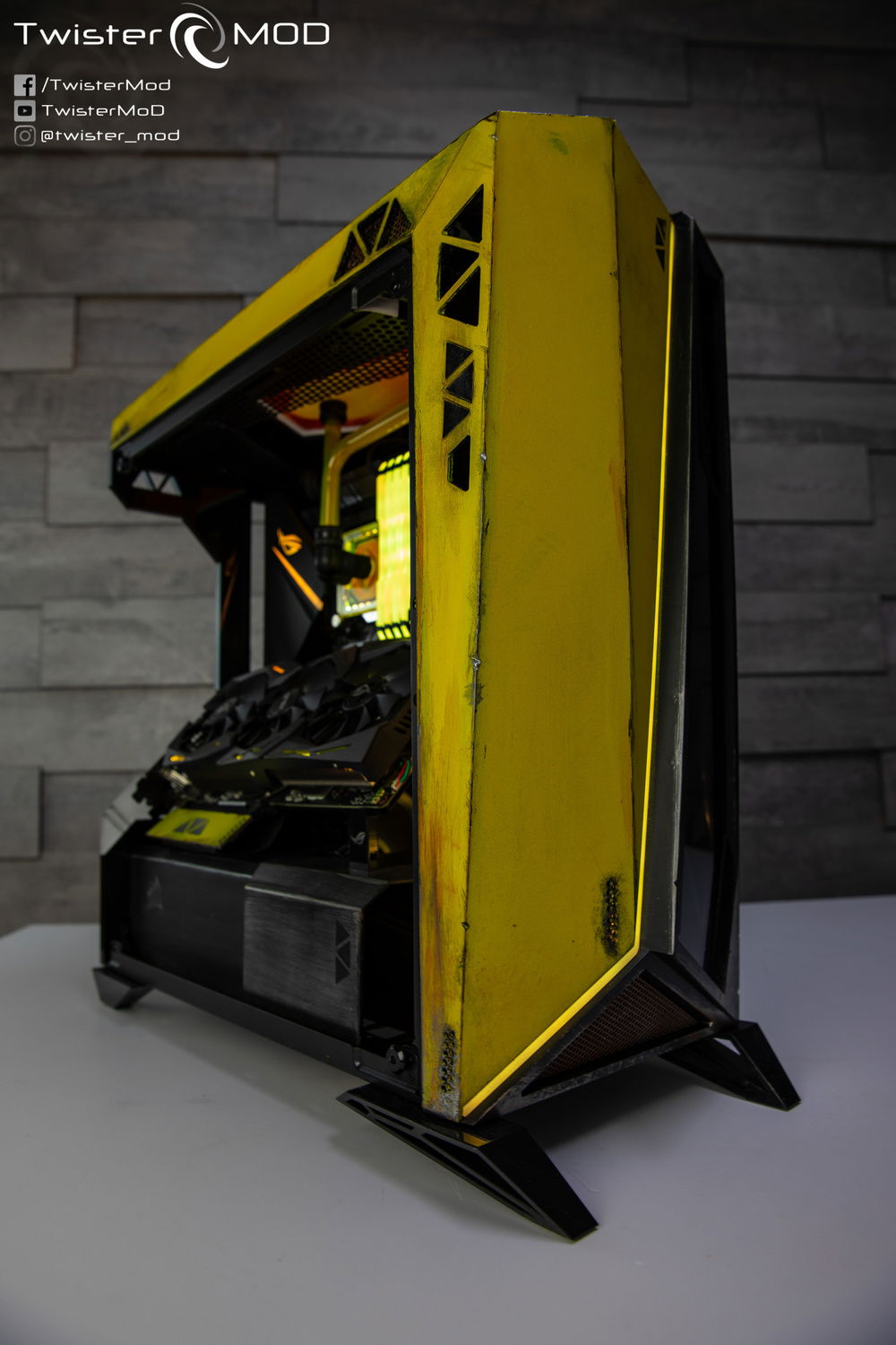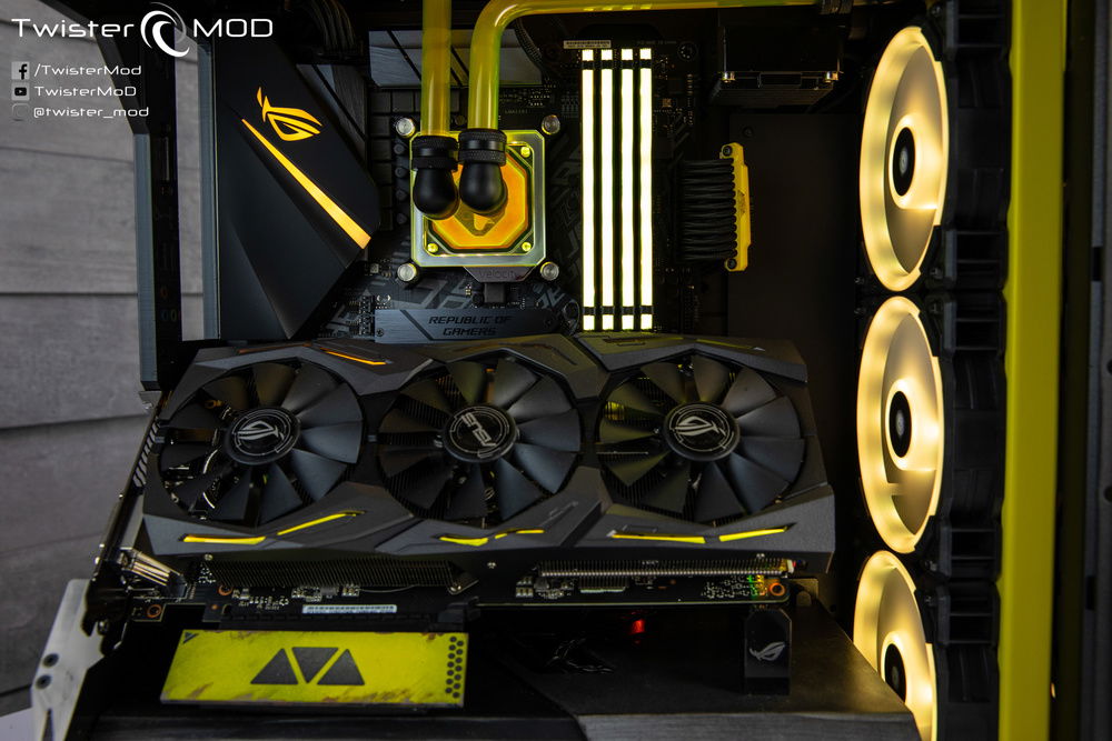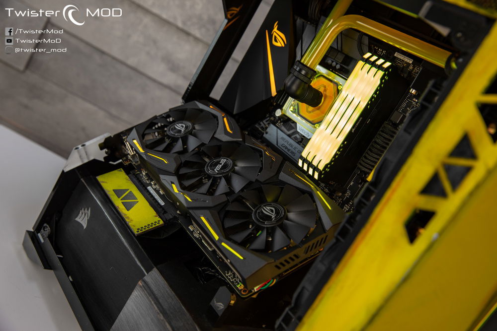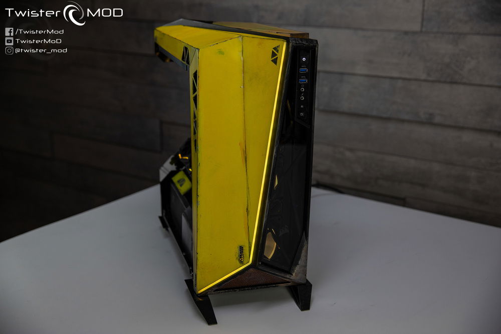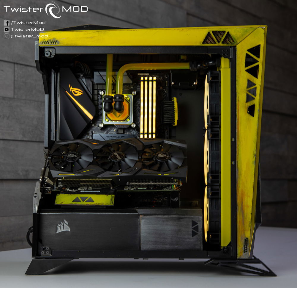 Inspired by the iconic Ranger armor of the eponymous Electronic Arts title, Daniel Twister Bolognesi's Project Anthem condenses the successful design of Javelin armor into an already extreme case. Show off the typical yellow livery and themed patter present throughout the game, combining a custom tank on the top with geometry in line with the ROG case and hardware for a captivating and evocative result, almost as if it were designed by the same hands that gave birth to the famous armor designed by EA.