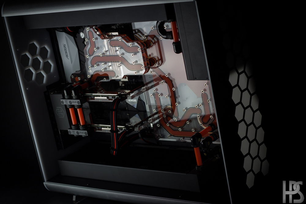 Project AORUS was initially thought as a simple show build with some watercooling and custom cables, but as it so often happens I got carried away and decided to custom make my own watercooling parts for the build.