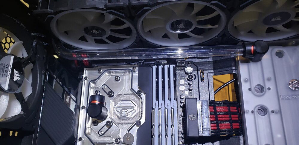 This is my first Hardline Tubing build back in 2021. My son wanted to learn how to build computers so I used this opportunity to teach him how to build them. The first problem I ran into was the video card... it broke trying to play Cyberpunk... EVGA replaced the card but that took 6 weeks, in the meanwhile I was able to score a ASUS EKWB GeForce RTX 3090, the EVGA 3090 end up on my son computer. Second problem I ran into was the Distro Pump, started to make noise... I end up building a new PC using a new R.O.G Z11 case that went on sale... eventually I converted this case into an Air Cooling PC that I am planning to sell.