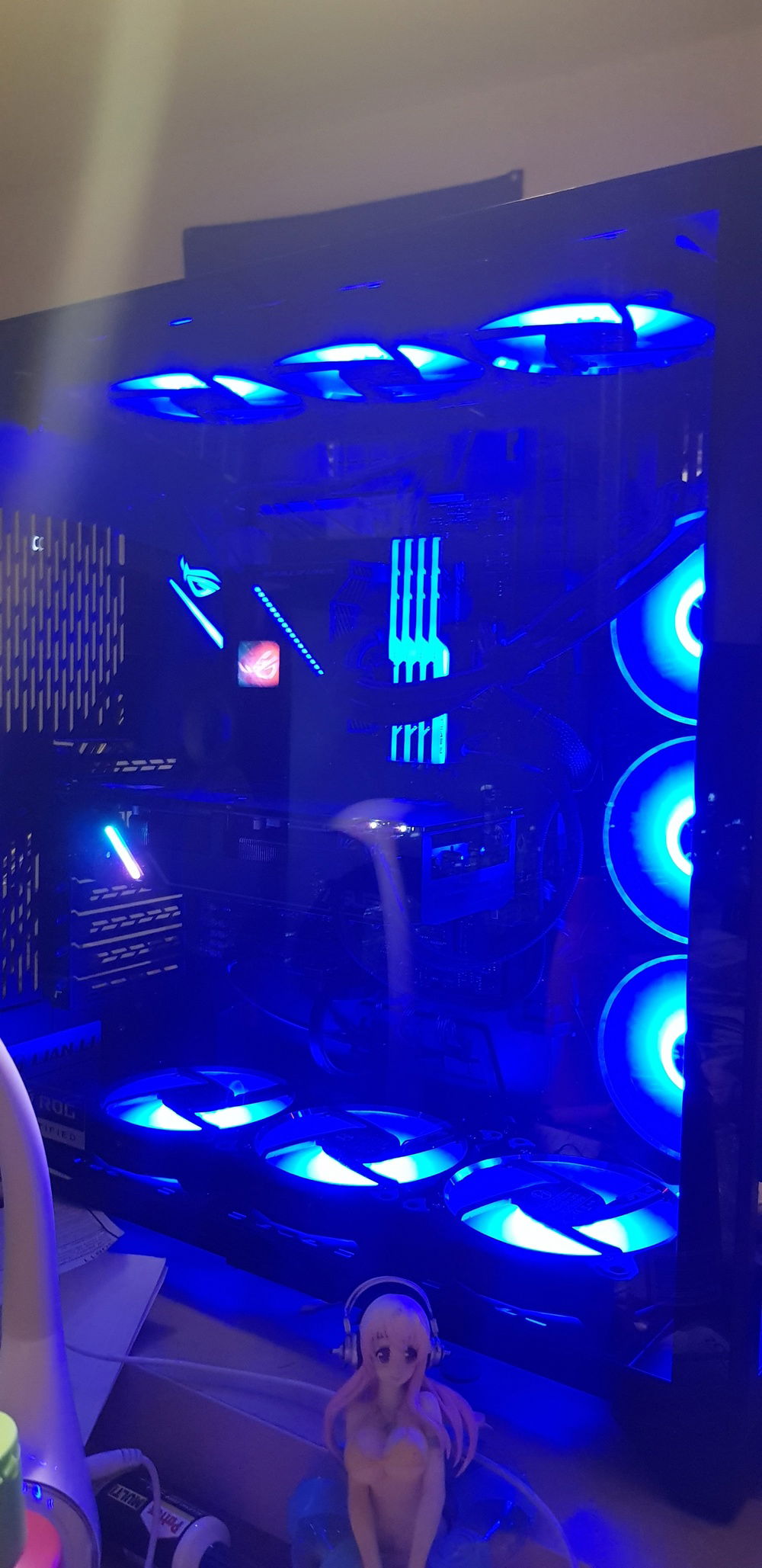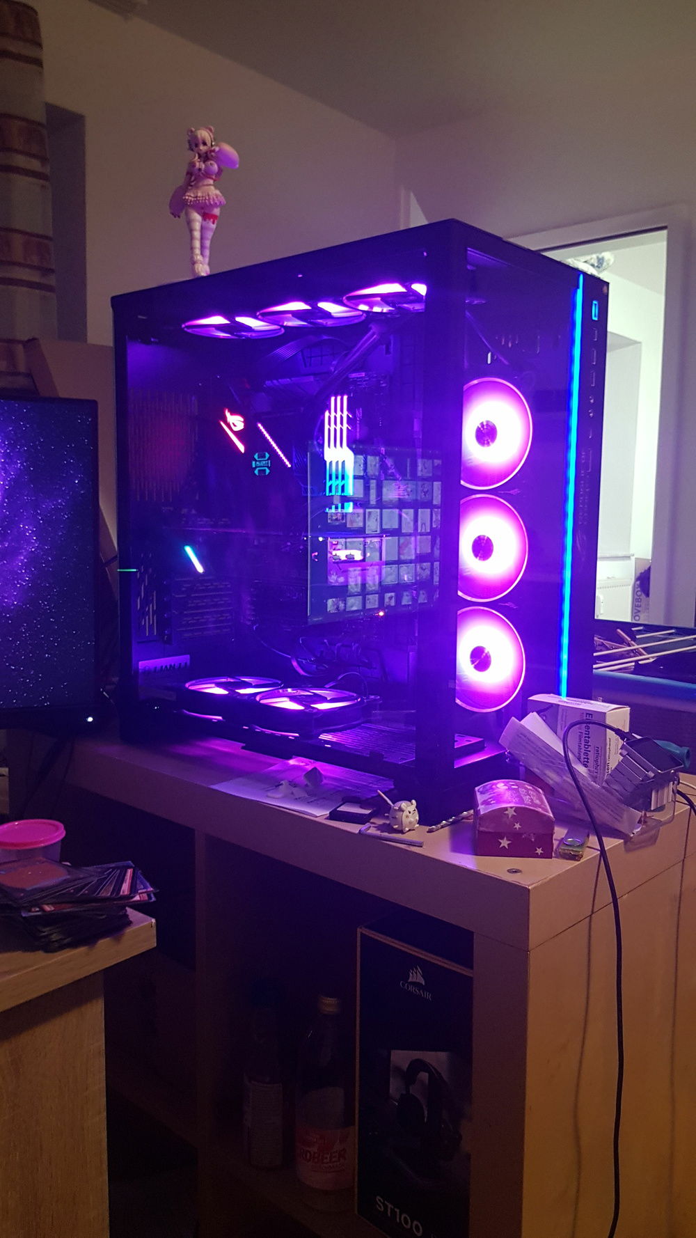 Now i got my hands on an Ryujin 360 AIO. The Noctura Fans are not installed on the Rad instad I installt them on the Bottom-Fan-Frame. So the total Fan-Count is now 10 Fans (9x 120mm and 1x 80mm) Next Thing on the agenda is the PSU.