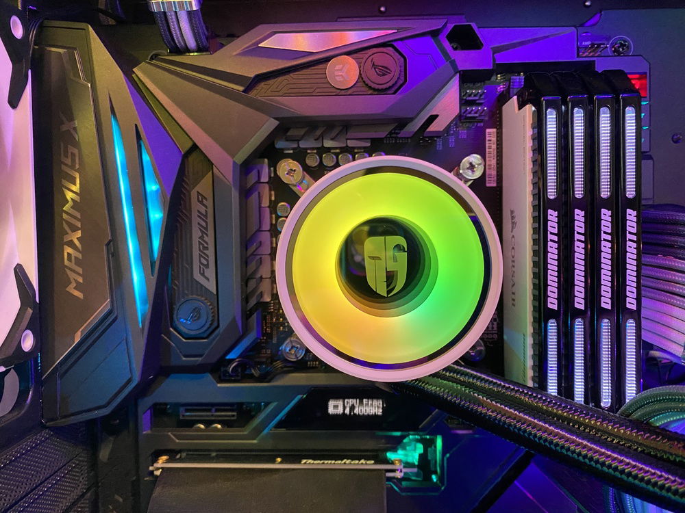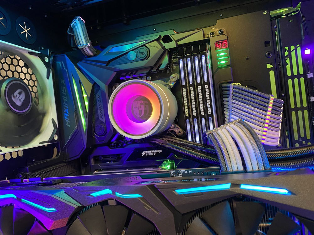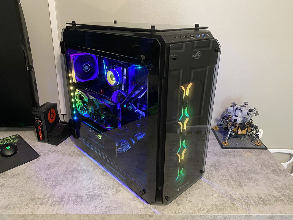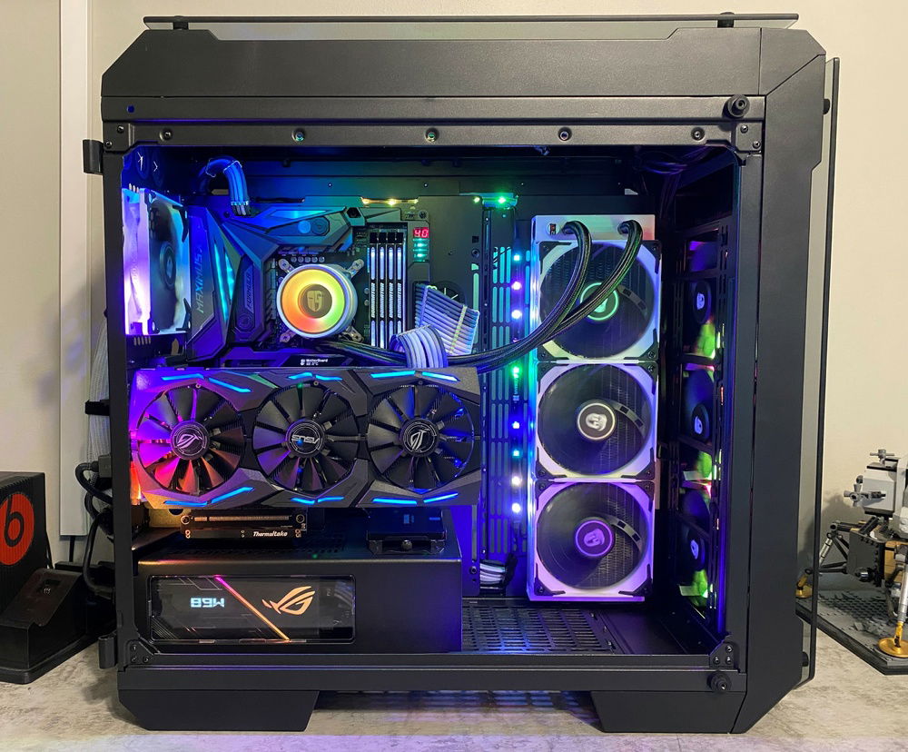 This is the second version of my own personal rig. The system is built inside of the Thermaltake View 71 ARGB which is an amazing case to build in. It comes included with 3 addressable RGB fans which i have re-positioned to the top of the case. The system is being driven by an Intel Core i7 8700k which I have not yet overclocked and a single ASUS GTX 1080ti Strix. Unfortunately, when I built this rig it was right before the RTX cards were announced so its not quite as current, but it still runs flawlessly.