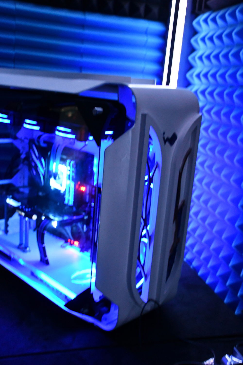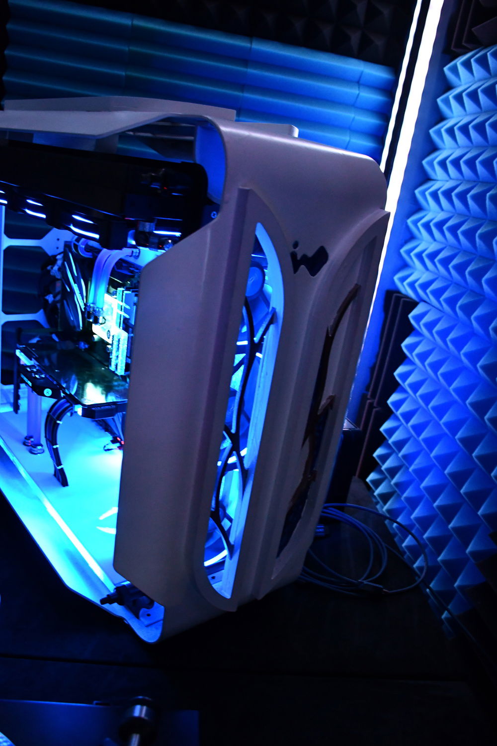 Originaly the case haven't air-vents in front or top so i made some cut-outs. Also I painted the case in white so it will match the mod-theme better (the Aleyd-ruins are made out of marble or some white colored stone). I also must say I haven't build any Distroplates! I showed it to some friends and a german youtuber (who shows comunity-setups) and most of them are thinking i build some in^^