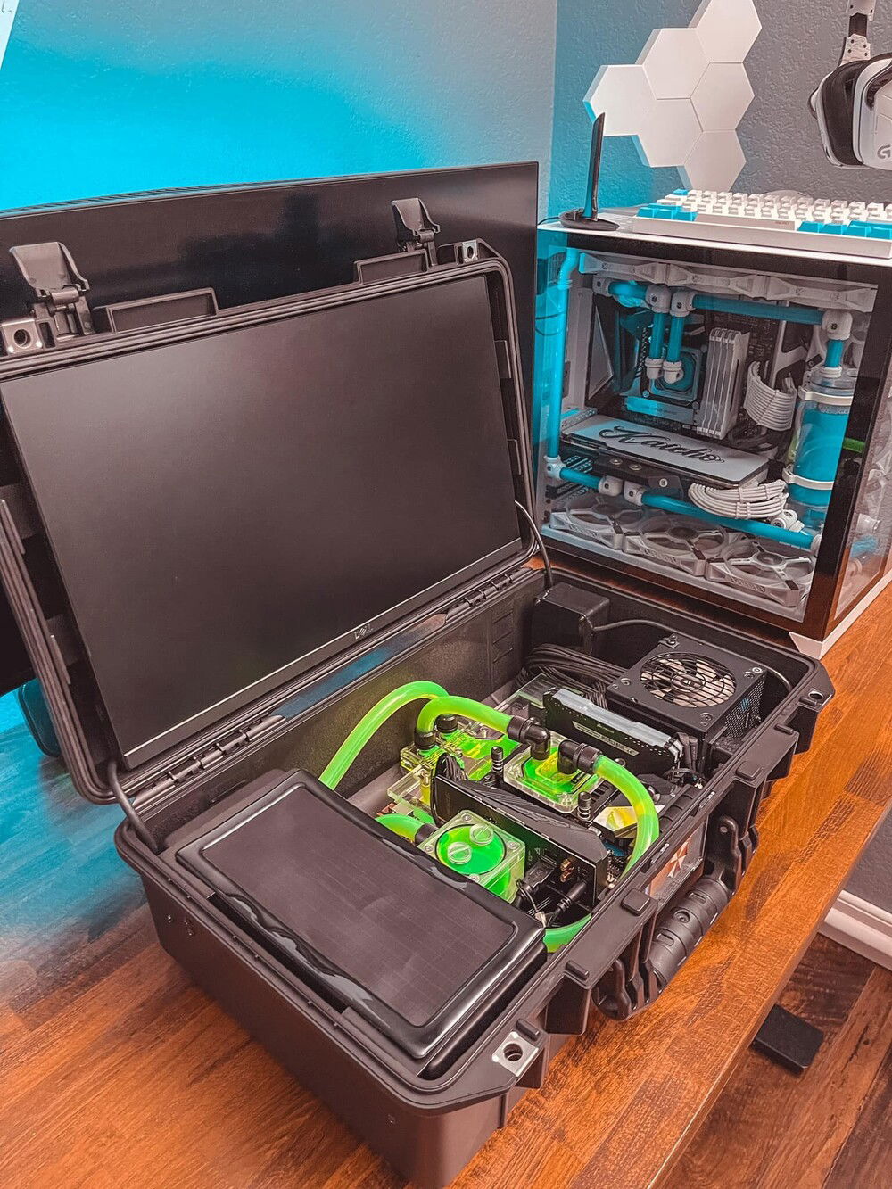 here's my latest creation "Project CONTAGION" a portable liquid cooled gaming & workstation pc, built into a pelican case!