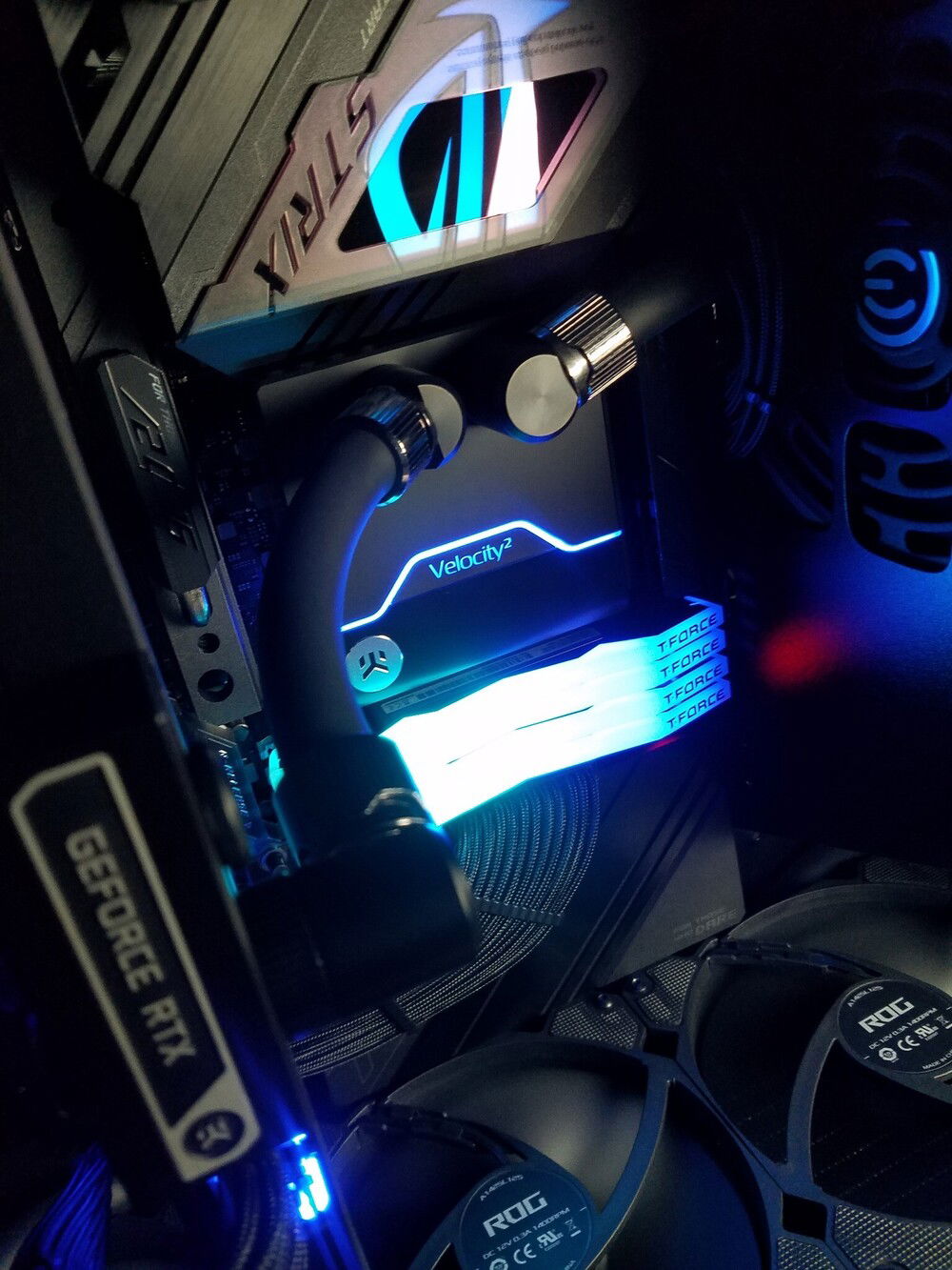 Fans: 3x 120mm Noctua iPPC, 1x 120mm Noctua Chromax, 3x 140mm ASUS ROG Strix