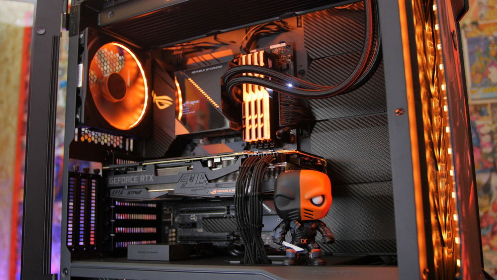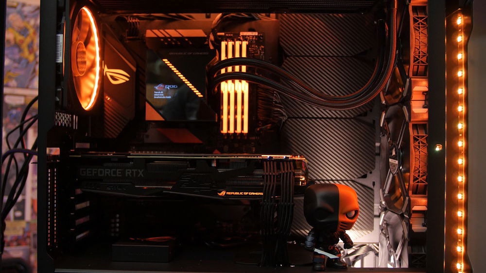 High end gaming build build around ASUS Republic of Gamers hardware and with a Deathstroke theme.