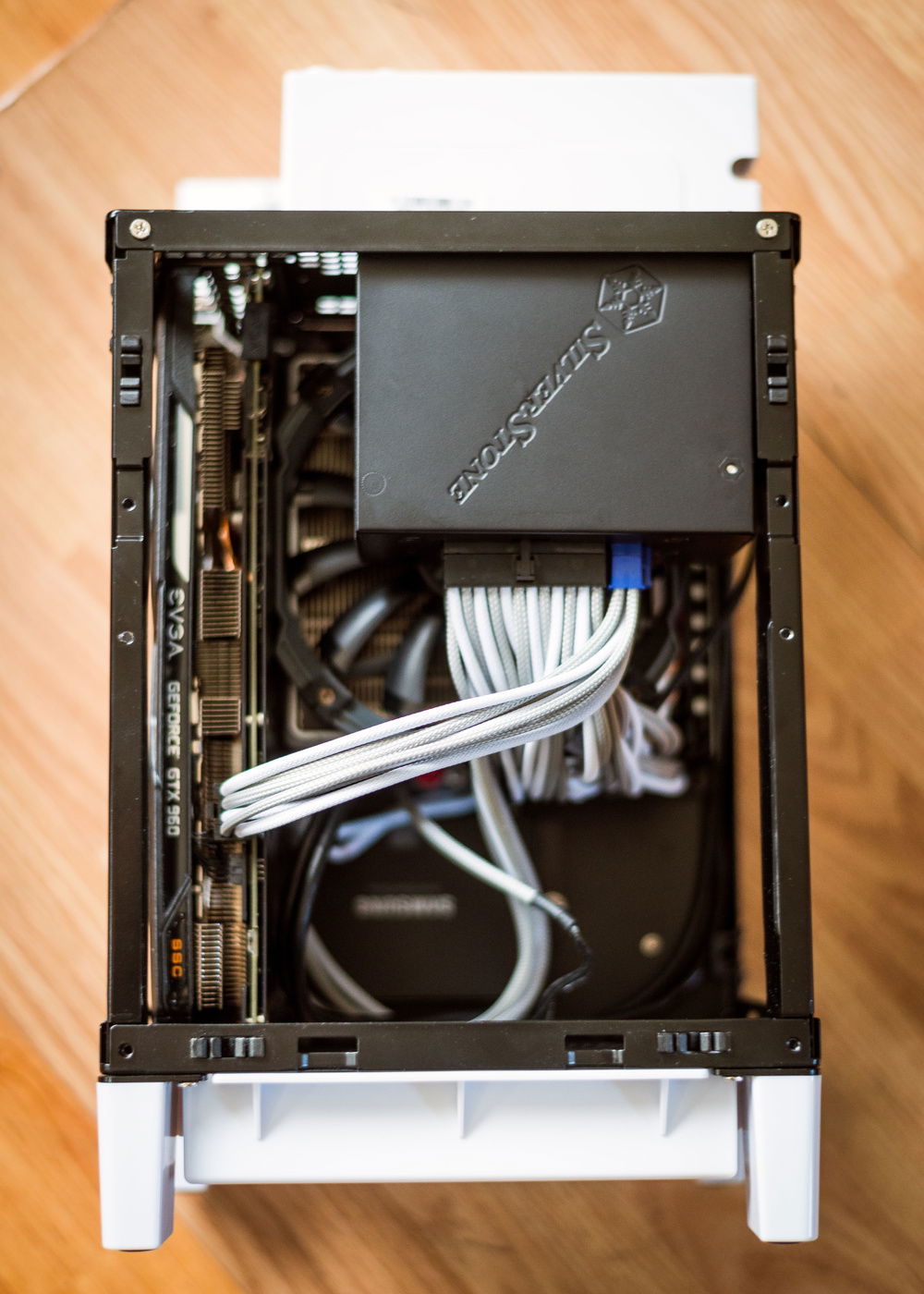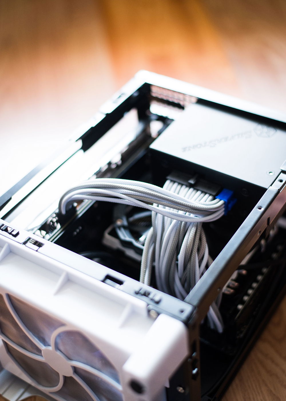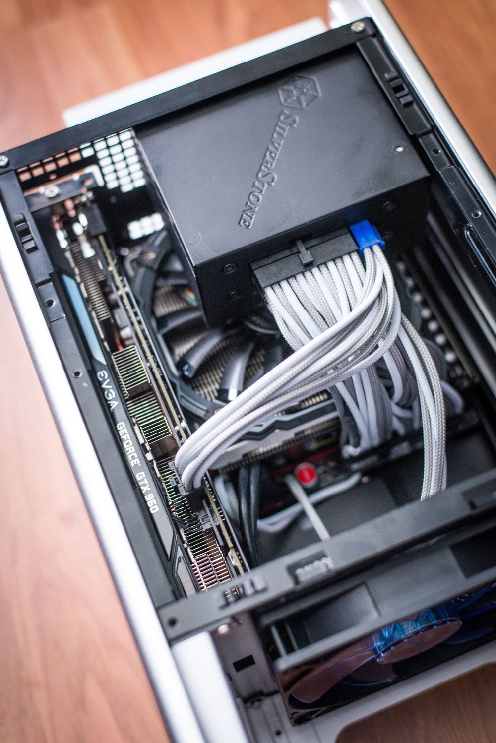 I really have to give it to Silverstone on this one. Shrinking the form factor of a power supply is extremely complex. The fact that it’s 80+ Gold for its size blows my mind. The power efficiency of this power supply paired with Maxwell and the Intel processor reduces the overall heat output and won’t make my room an oven. The cables did not come sleeved, I actually cut those cables down to length myself, and sleeved them. This power supply is definitely not the prettiest to sleeve, it’s far from a 1:1 pin-out. It does the job though, and still looks and performs great.