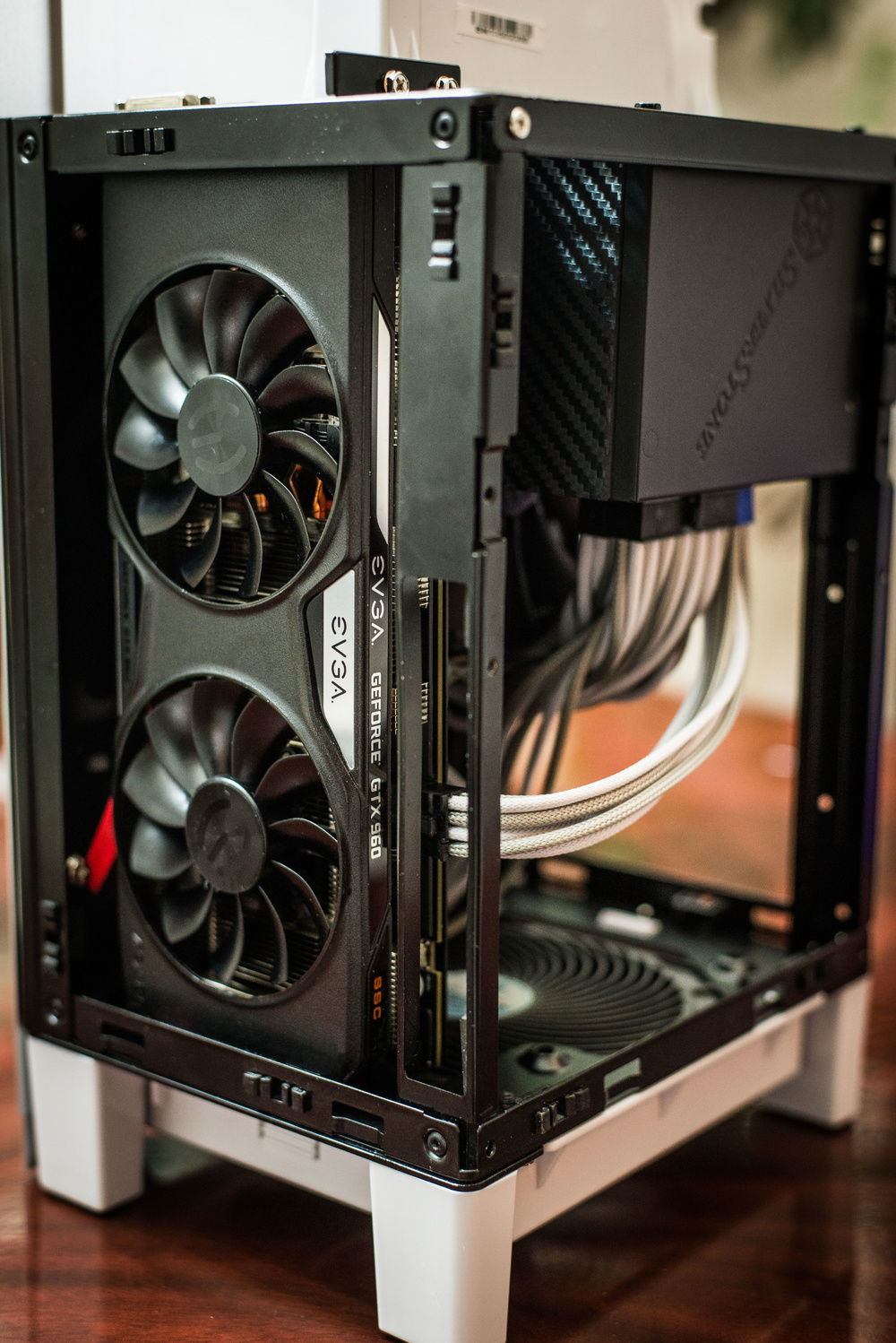 Maxwell is extremely efficient, which was very important to me. The low TDP and awesome performance of Maxwell is what drew me in. I’m aware that an R9 280 or 390 would’ve been a faster card, but like I said, efficiency! Plus, I like Nvidia’s features better. Nothing wrong with AMD, just a preference. AMD’s cards have certainly given me less of a headache though. I know a blower style card is recommended for the FT-03 Mini, but I’ve had no temperature issues so far and I couldn’t pass up EVGA’s awesome customer service and support. ASUS was my other contender, but I’ve had a handful of bad experiences with ASUS and decided against it. I was barely able to fit this card in there! I didn’t get shortened card over this because I wanted to see if I could get the ACX cooler to fit. Plus, it looks better…