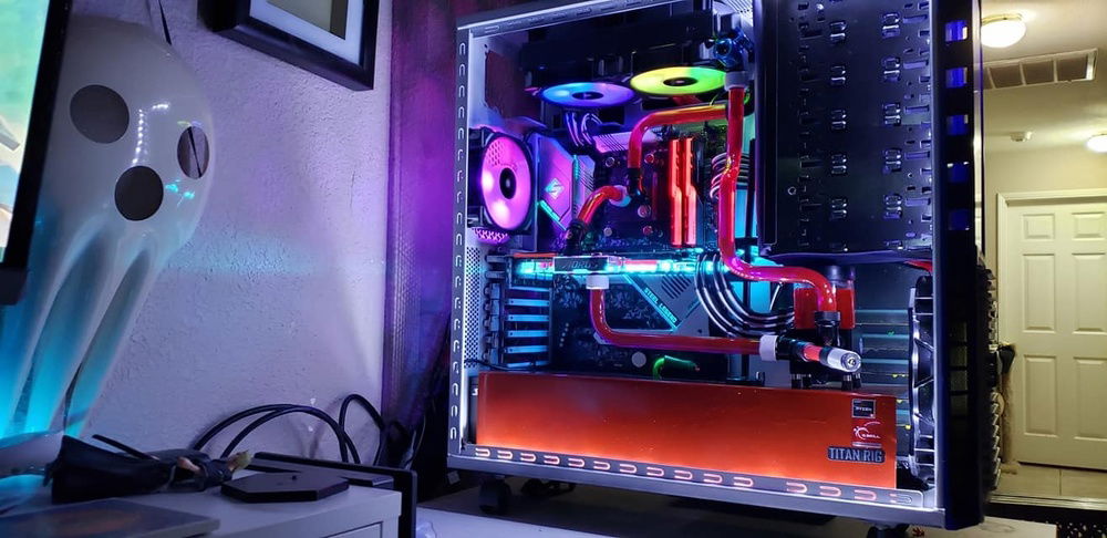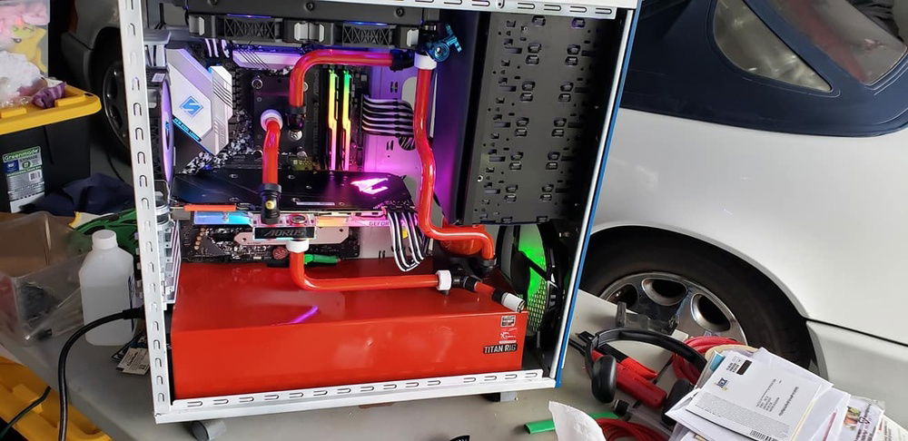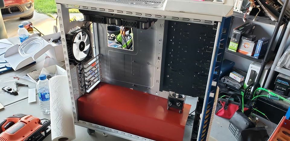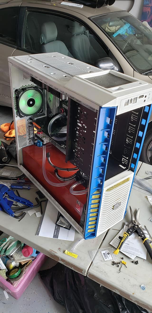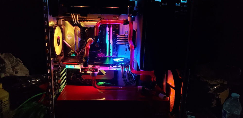 Got to installing the EK Fluid Gaming A240 kit. It comes with soft tubing, but the kit I got did not include the GPU, so I'm going to have to cut some of the hard tubing and stick it in there. The cooling might look a little tacky, but I've somehow lost my patience with quarantine. Motherboard, CPU, GPU, RAM, PSU, and the NVMe drives are installed as is most of the water cooling. Waiting on more fittings to make a fill port.