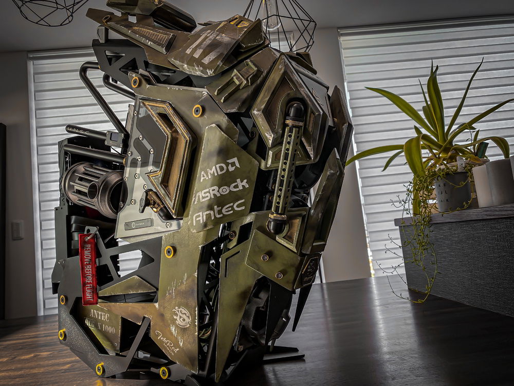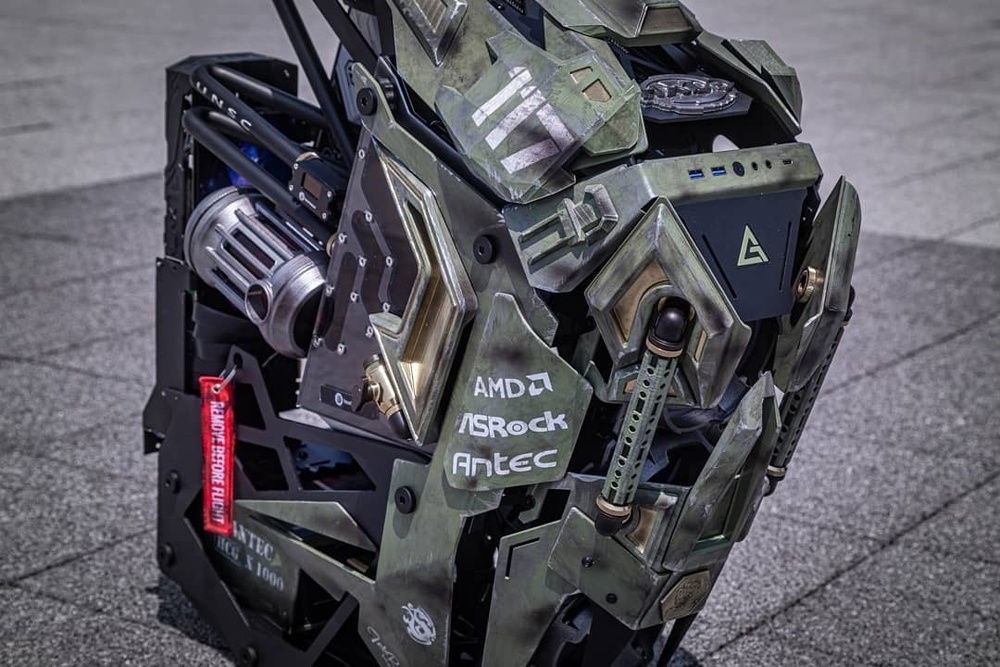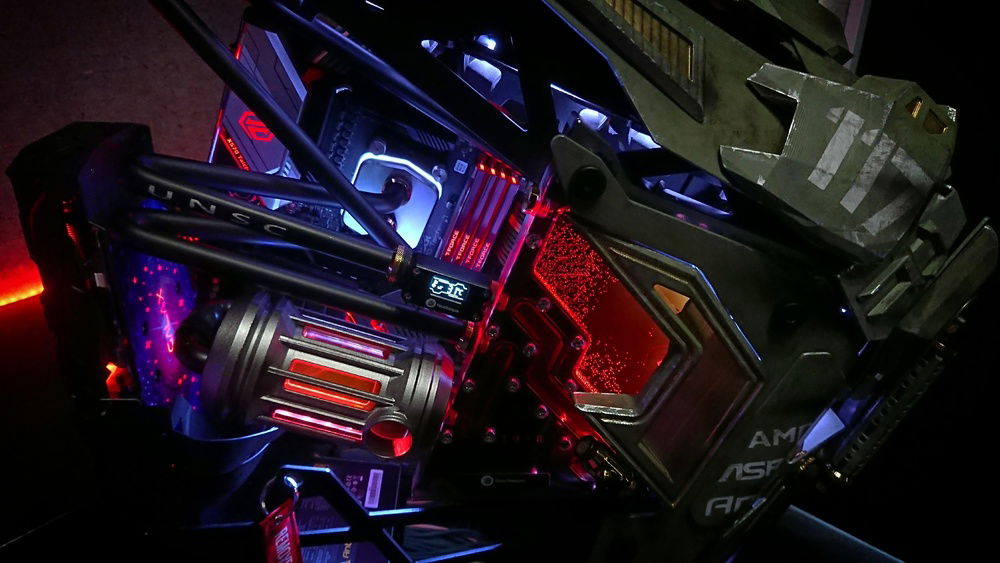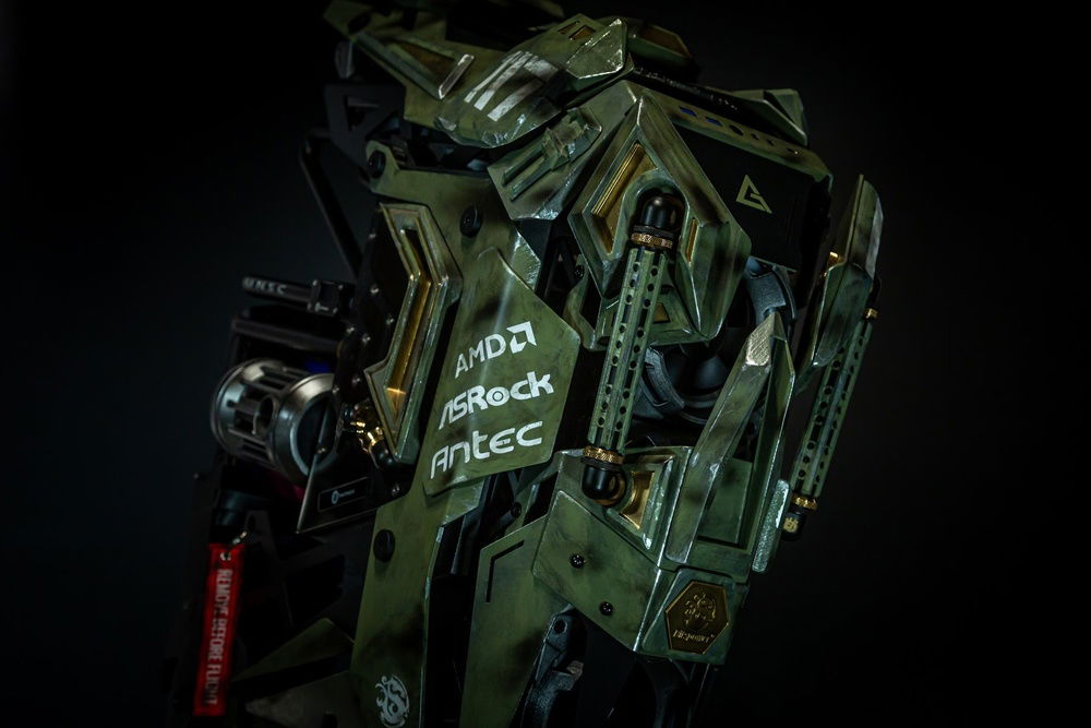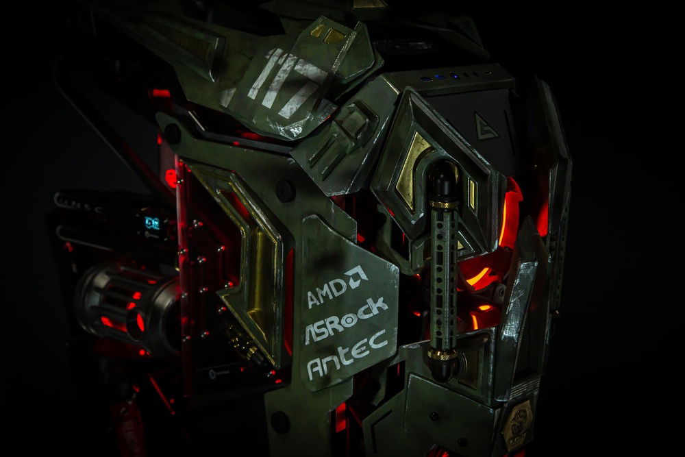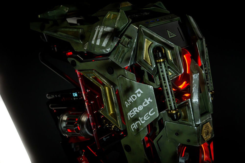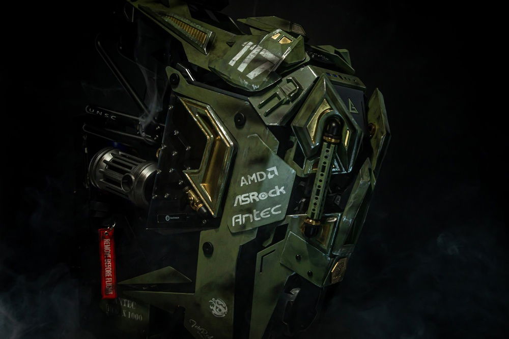 This build uses the Antec Torque chassis and is inspired by Master Chief from Halo. I wanted to do something different than all the other Torque builds I seen so I decided to keep the gpu stock cooler and mount it in the back to make it look like thrusters on a space ship or something lol. Being former military I love the army green color so I wanted this build to look like it has been through battle with damaged look and carbon scoring. Since I was only cooling the cpu and mounting the gpu in the back I wanted to fill out there space so I decided to create a "fuel cell" using a small res off the distro which I haven't seen before, it works well with this build I believe. More photos to come but I hope you enjoy