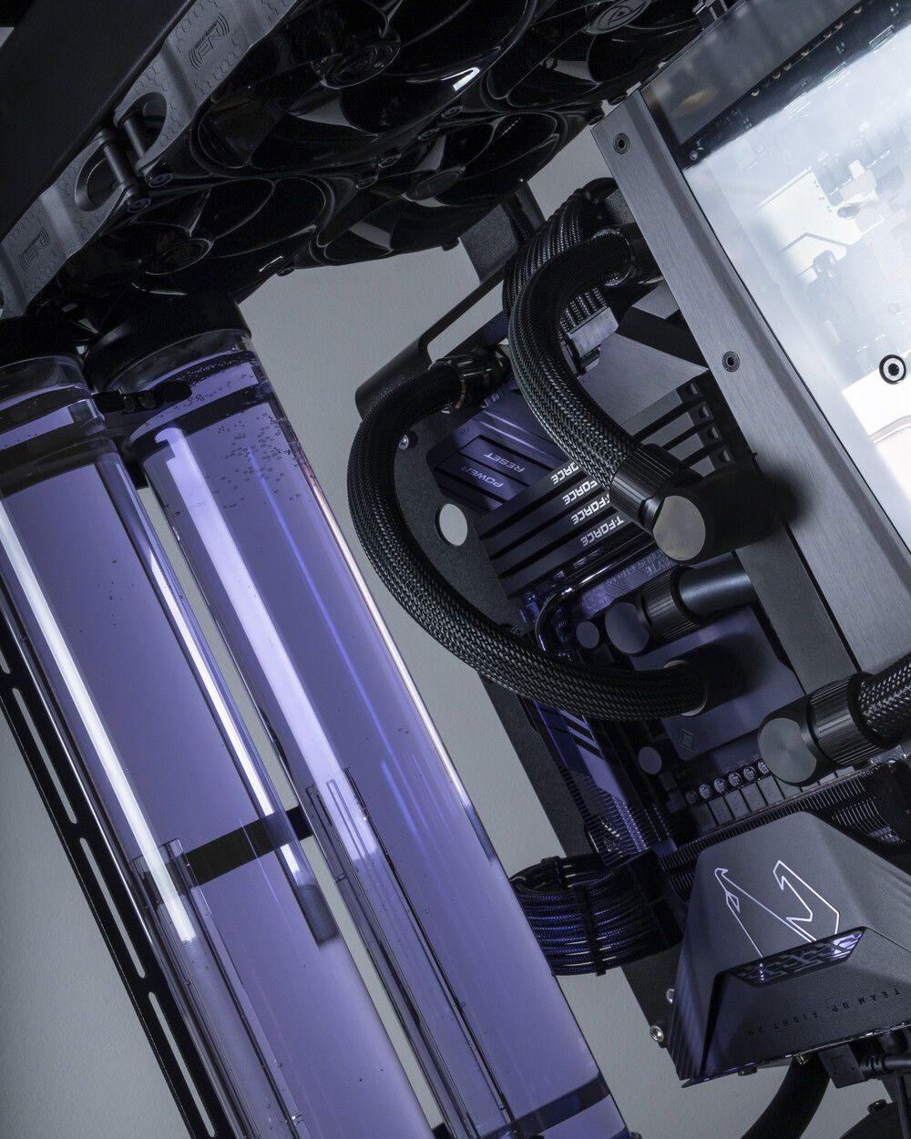 This build also is a showcase for Yuel Beast's latest chassis - the Atlas II. Essentially a supersized version of the Atlas I, this chassis supports an insane amount of configuration for any sort of hardware setup you've got. Being that it can support 4x 360mm radiators, I most definitely opted for Watercool's new Heatkiller radiators, and Noiseblocker eLoops because I gotta have the best.