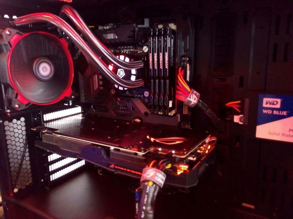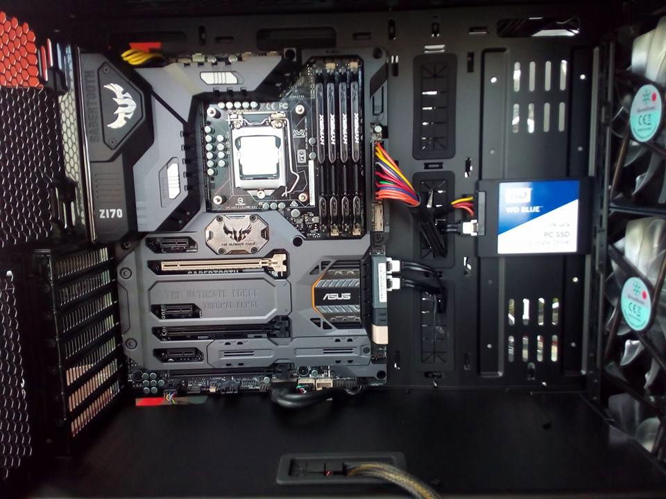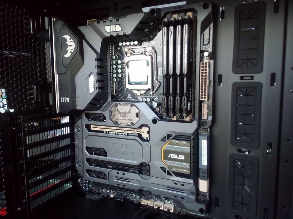Intel Core i7-6700K 4.0Ghz ID Cooling Frostflow 120L Red CPU Liquid Cooler Asus TUF Sabertooth Z170 Mark 1 Kingston 32Gb (8Gb x 4) 2400Mhz Hyper X Fury Black DDR4 Asus NVidia Geforce GTX 1080 Strix Advance Edition 8Gb 256-Bit GDDR5X Silverstone Primera Black Chassis Silverstone Strider Gold Evolution 1200W 80+ Gold Fully Modular PSU Western Digital Blue 1Tb SSD Seagate 3Tb Barracuda Hard drive Silverstone Primera 140mm Fans Asus Strix Claw mouse Asus Strix Pro Headset Silverstone Raven Extended mousepad