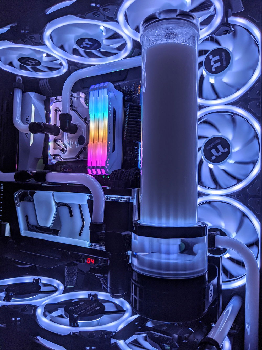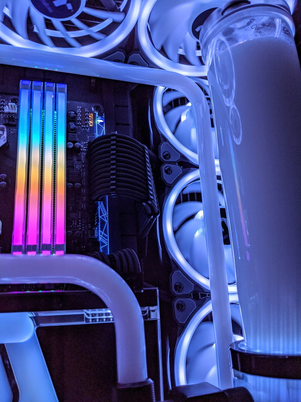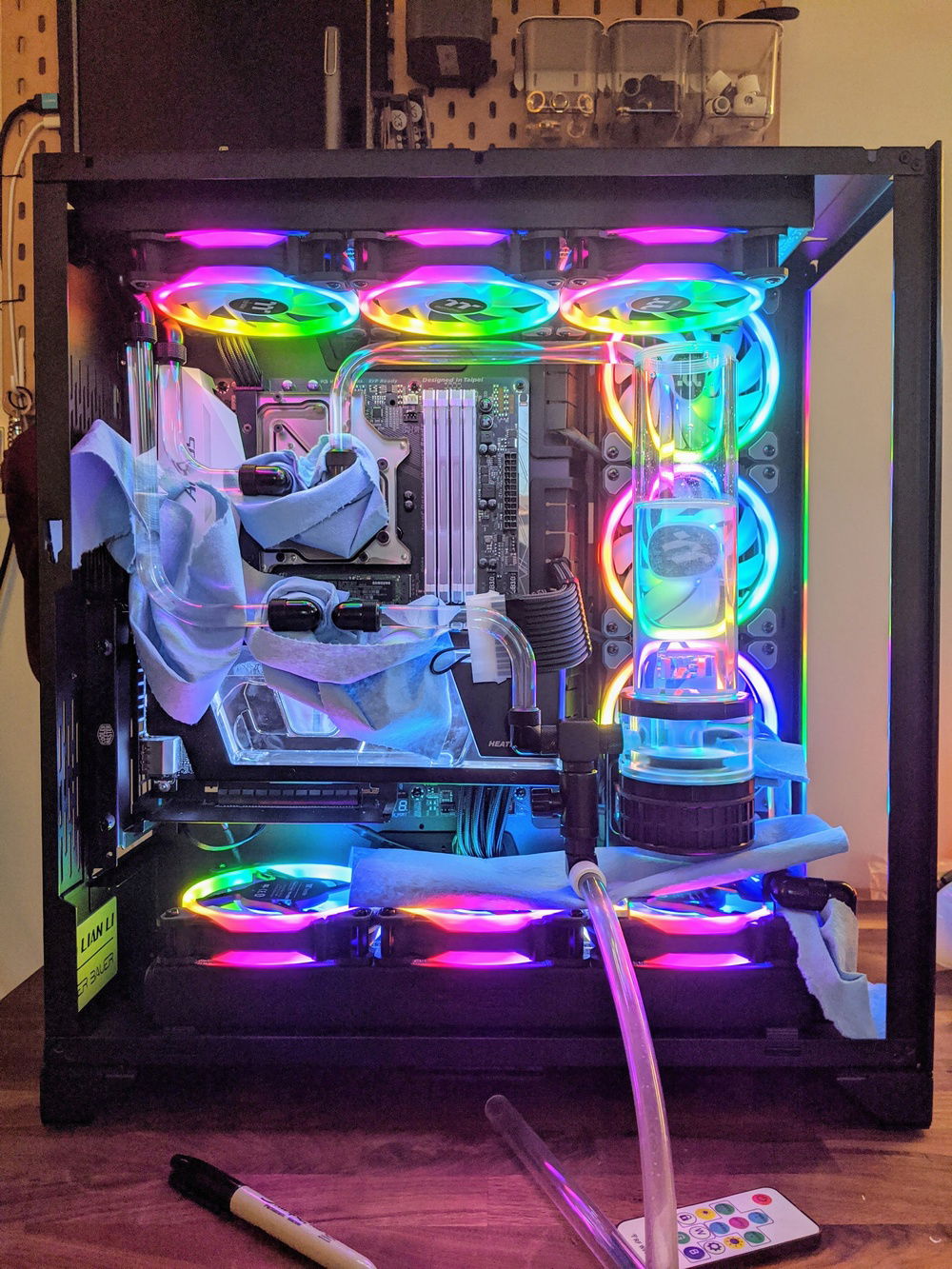 This is a rebuild of my last build so the hardware is the same except the case, extra radiator and fans. Didn't do anything complicated here because the O11D XL is just so easy in build in and from what I can tell seems to be sort of a rite of passage for every custom PC builder so here's my take! I opted to not use a distro plate and instead use 3x radiators because 1) the extra cooling and 2) I don't really like how the distro plate forces your build to look a certain way. Happy with the way it turned out though, turns out you can never have too many RGB fans!