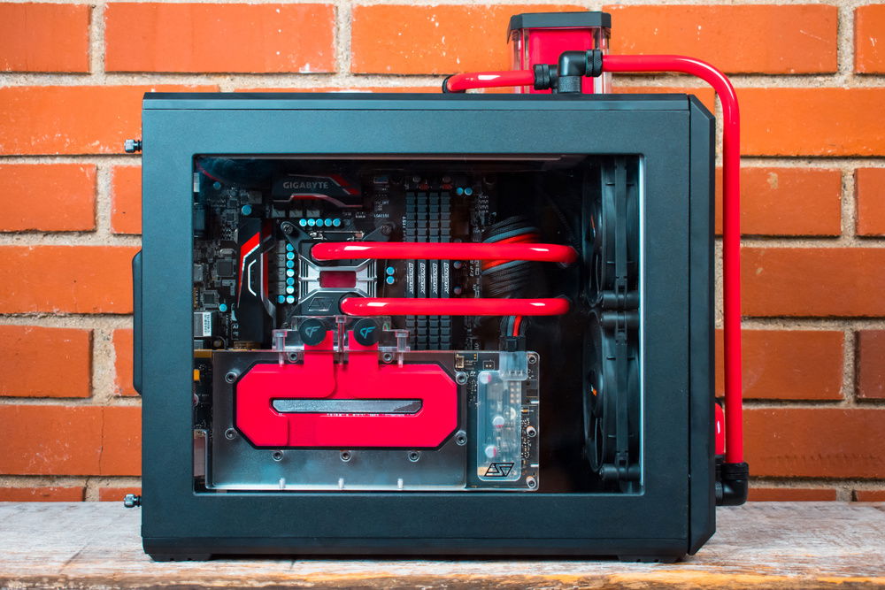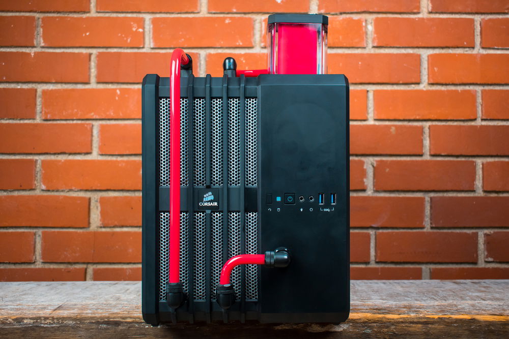 One of my most ambitious projects to date. Decided to think outside the box (literally) and create a fully custom loop inside (and outside) the Corsair Air240. There were lots of sparks flying during the creation of this system! A tempered glass side panel was also installed to replace the flimsy acrylic window.