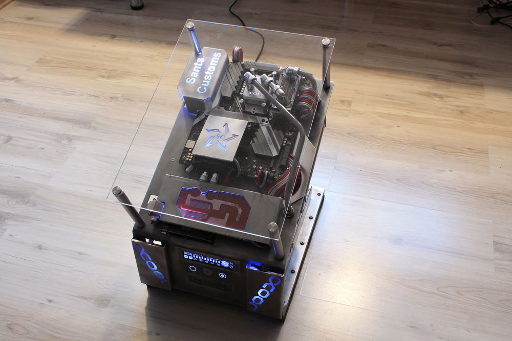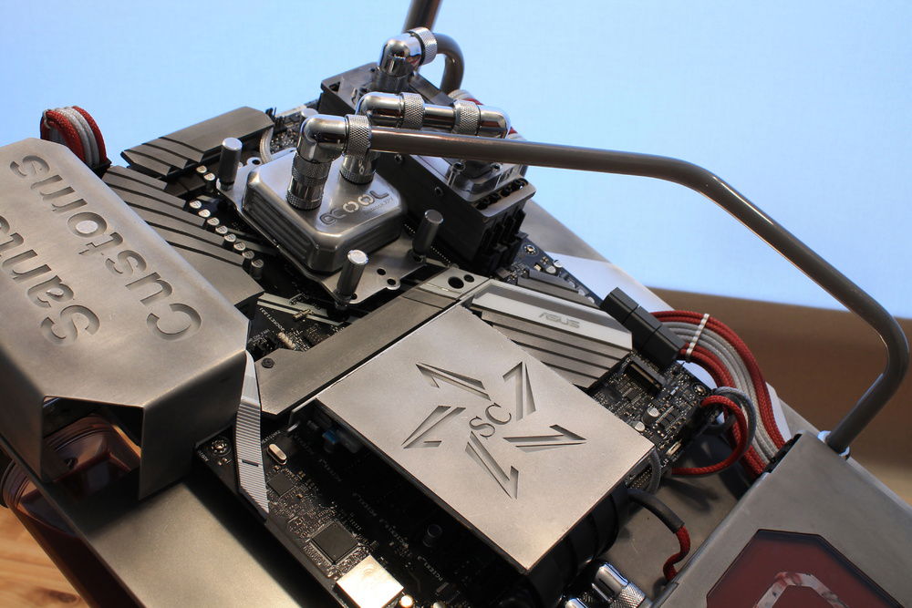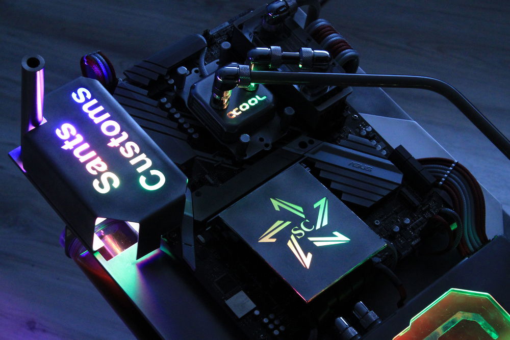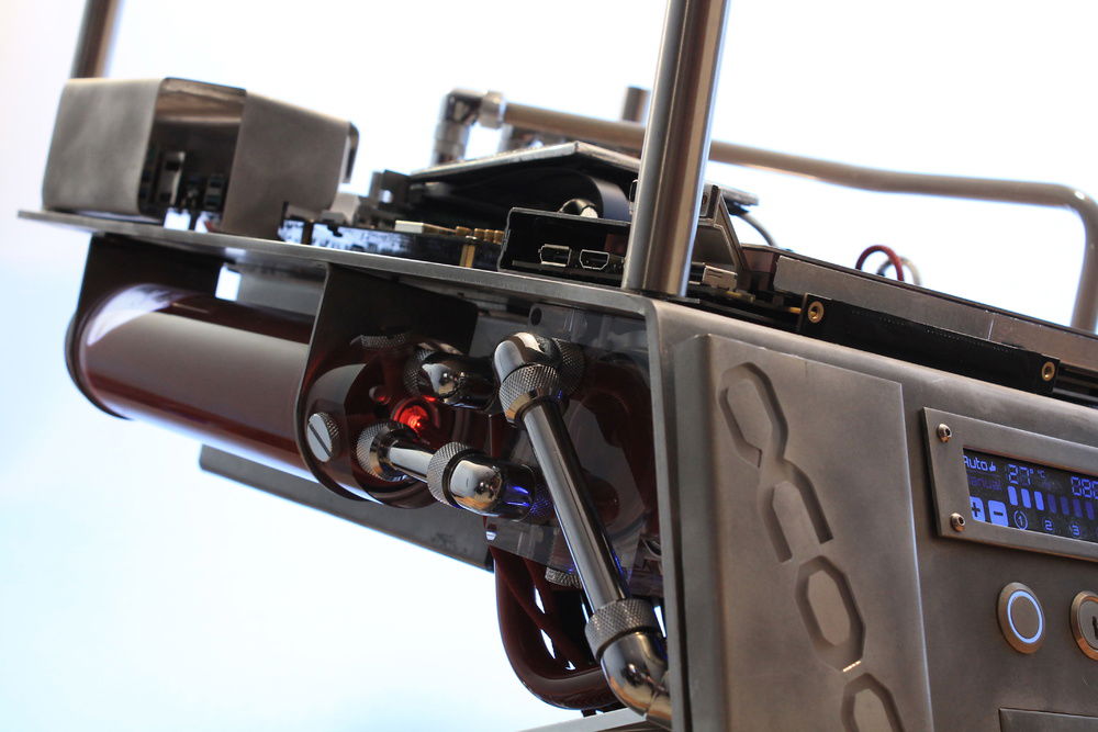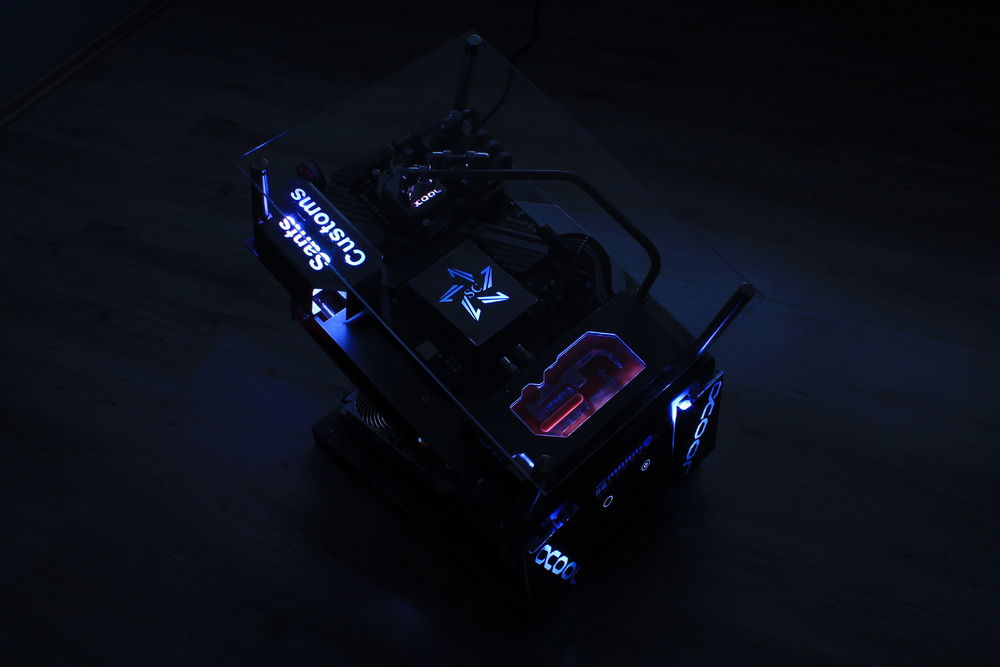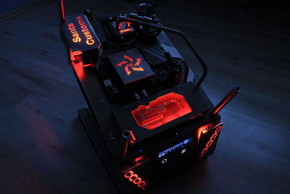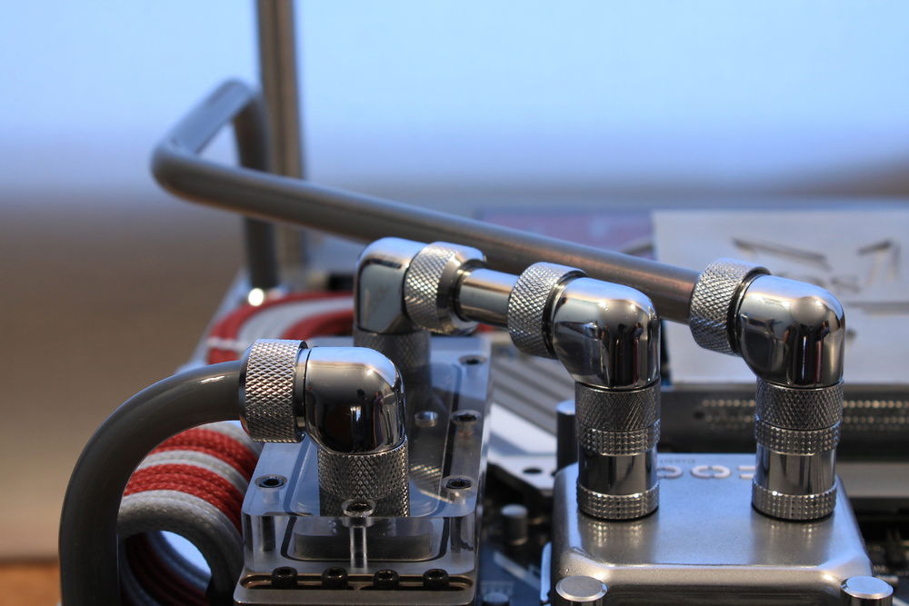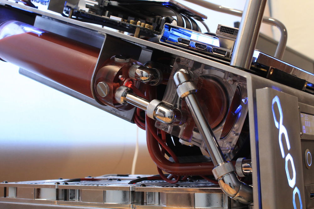 All the cutouts to the 5mm / 3/16 inch aluminium frame were done by hand. The cables are custom sleeved using MDPC-X's diamond red in combination with transparent sleeving.