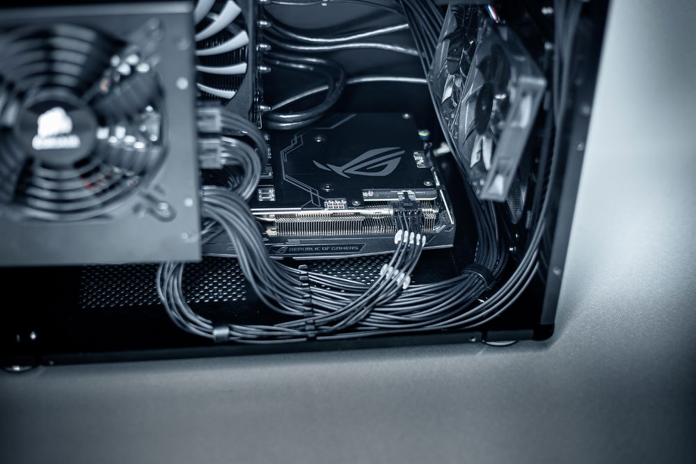 The ProjectA mini ITX-Case, ASUS Strix Mobo, ASUS Strix Graphics Card, Samsung SSD, Corsair PSU, Raijintek CPU-Cooler, some Fans and the main colors should be black like a Shadow.