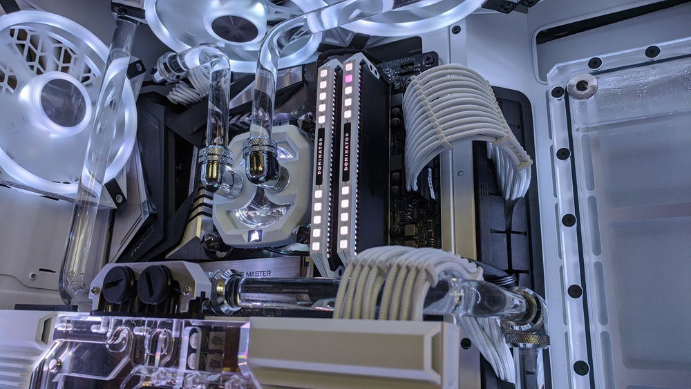 Corsair Hydro X coolant, fittings, reservoirs and tubing - My first time watercooling and I have to say the acrylic tubes were somewhat difficult to cut.