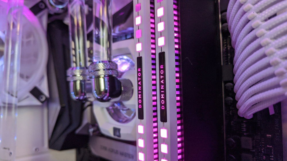 Corsair Dominator Platinum RGB 32gb - It's actually 3000mhz cl15. Great RAM, I haven't attempted to overclock just yet. One of many components using Corsair's iCue software.