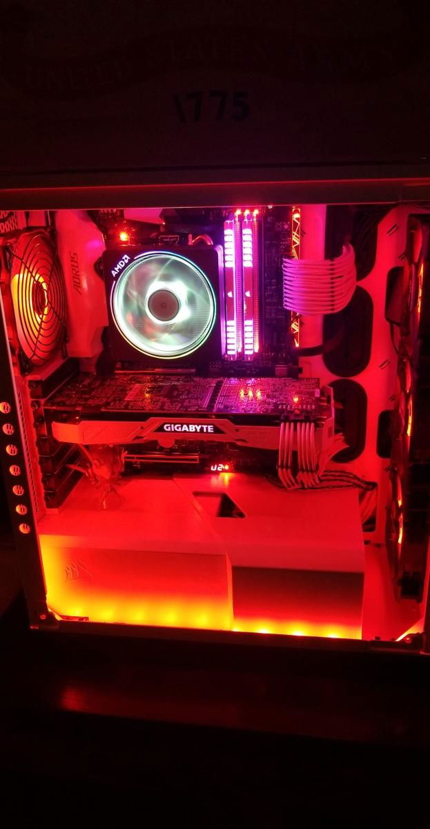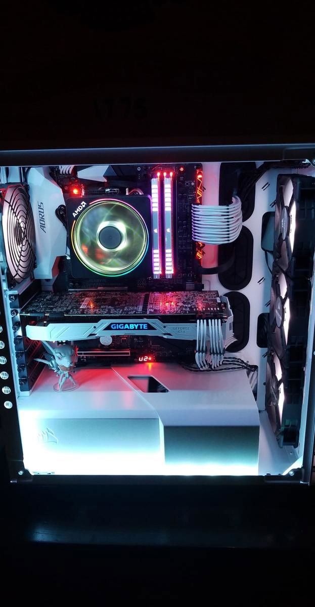 This is my first ever custom build but my friend Nixx did most of the work due to him having more experience than me. My first objective was power and theme. My favorite color is red, but I'm am so sick of the red and black theme. So I deiced white was a good color it was different and not really used that much. Anyway I went with Gigabyte GTX 1080 TI because it met both my needs for power, cosmetics, and it was a steal. During the month of April I got both the 1080 TI and the gigabyte GA-AX370 Gaming 5 ATX mother board for a little over $900, I couldn't pass up the deal especially when graphic cards' prices were all over the place. I followed the rest of the all white themed with the corsair vengeance RAM, was a little upset cause two weeks after buying it the newer model came out for the same price but looked better. As for the case I went for the Corsair Crystal 460X white. I love the design and unlike its' 560 counter part it has a solid white side panel best for hiding cable management. All that being said this computer is a boss, it's fast and with my Asus MX34VQ 34" I can get stupid close to 4k without having a low Hz. I mainly play GTA, RPGs, and Fighters. As for work loads I plan on buying me a XP-Pen drawing tablet for graphic designs. I'm gonna update my bench marks I'm an idiot and forgot to save them and I don't remember anything. WARNING: If you use the Ryzen 2nd Gen CPU with an older board you're gonna need a older processor to update the bios or a boot kit from AMD.