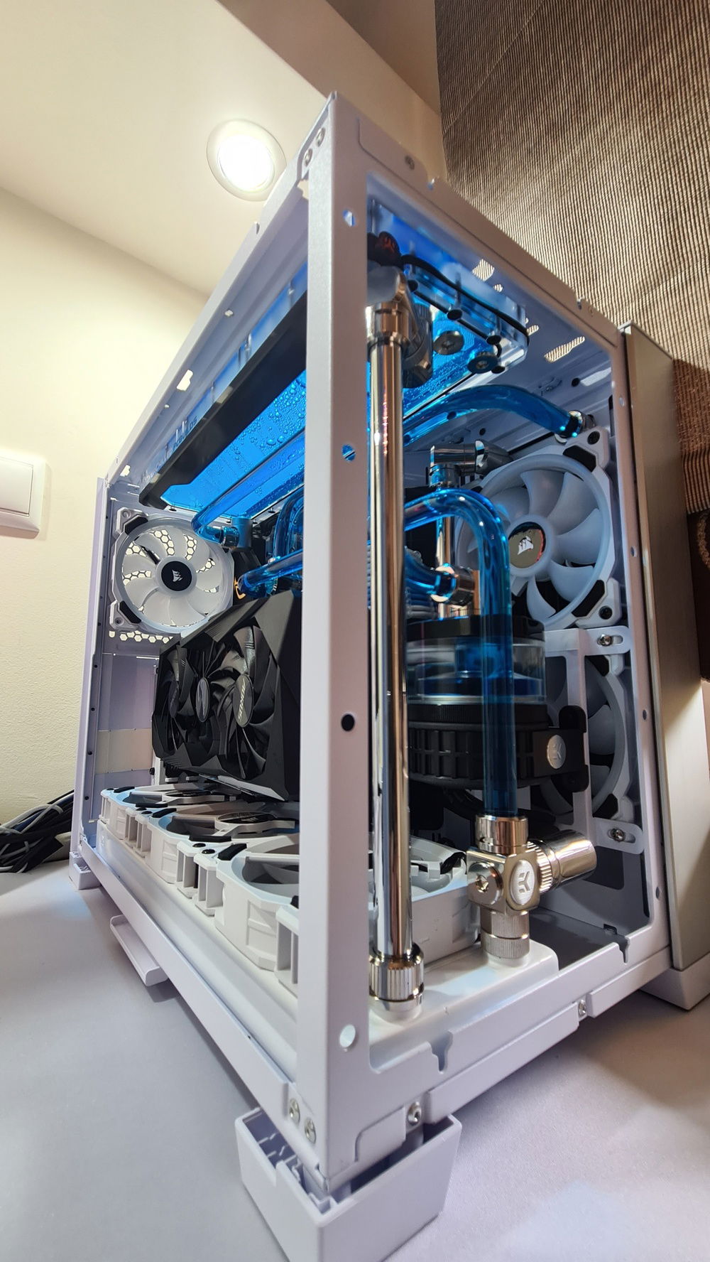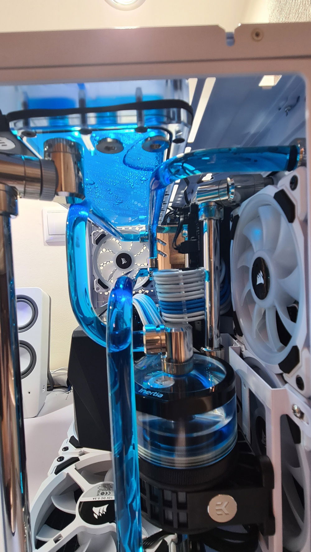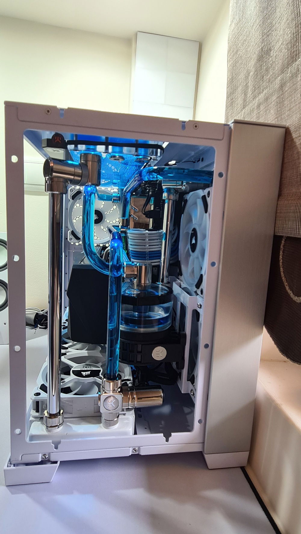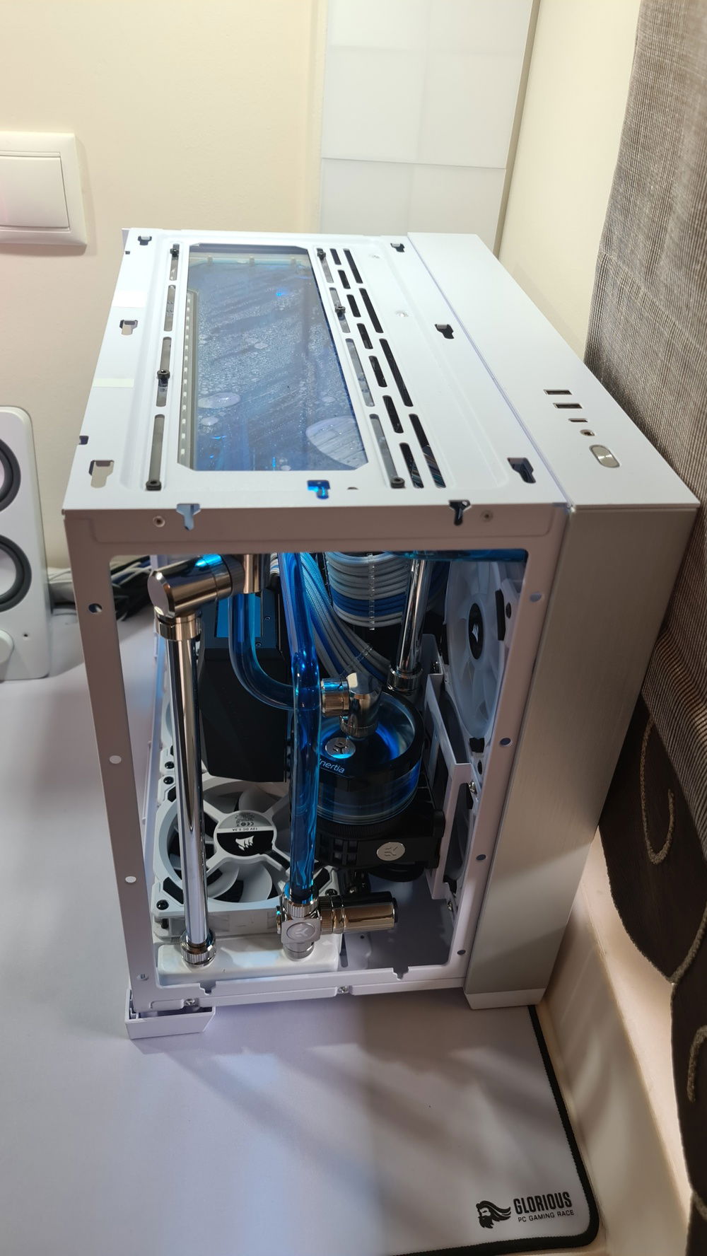 We have already preparing a re-design, with a new GPU, which will be included in the custom loop (Aorus 3080 Waterforce WB) , new fluid (mystic fog), front distro panel for the o11 mini (brand new) and a new set of 3 Corsair QL fans, Lian Li mini vertical white pcie4 kit and some new tubes. Finally there will be installed in the new edition of the mini, the snow edition and the 360 res along with the pump will be romoved.