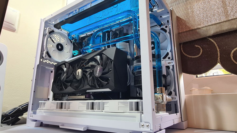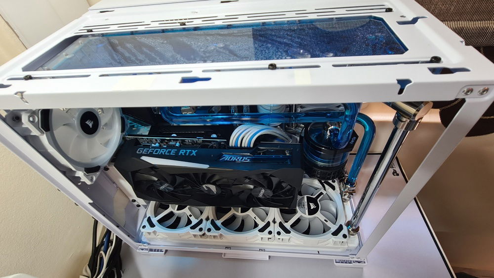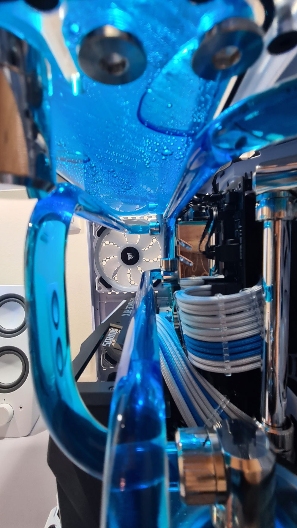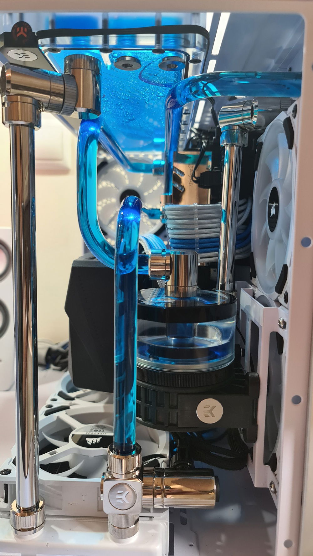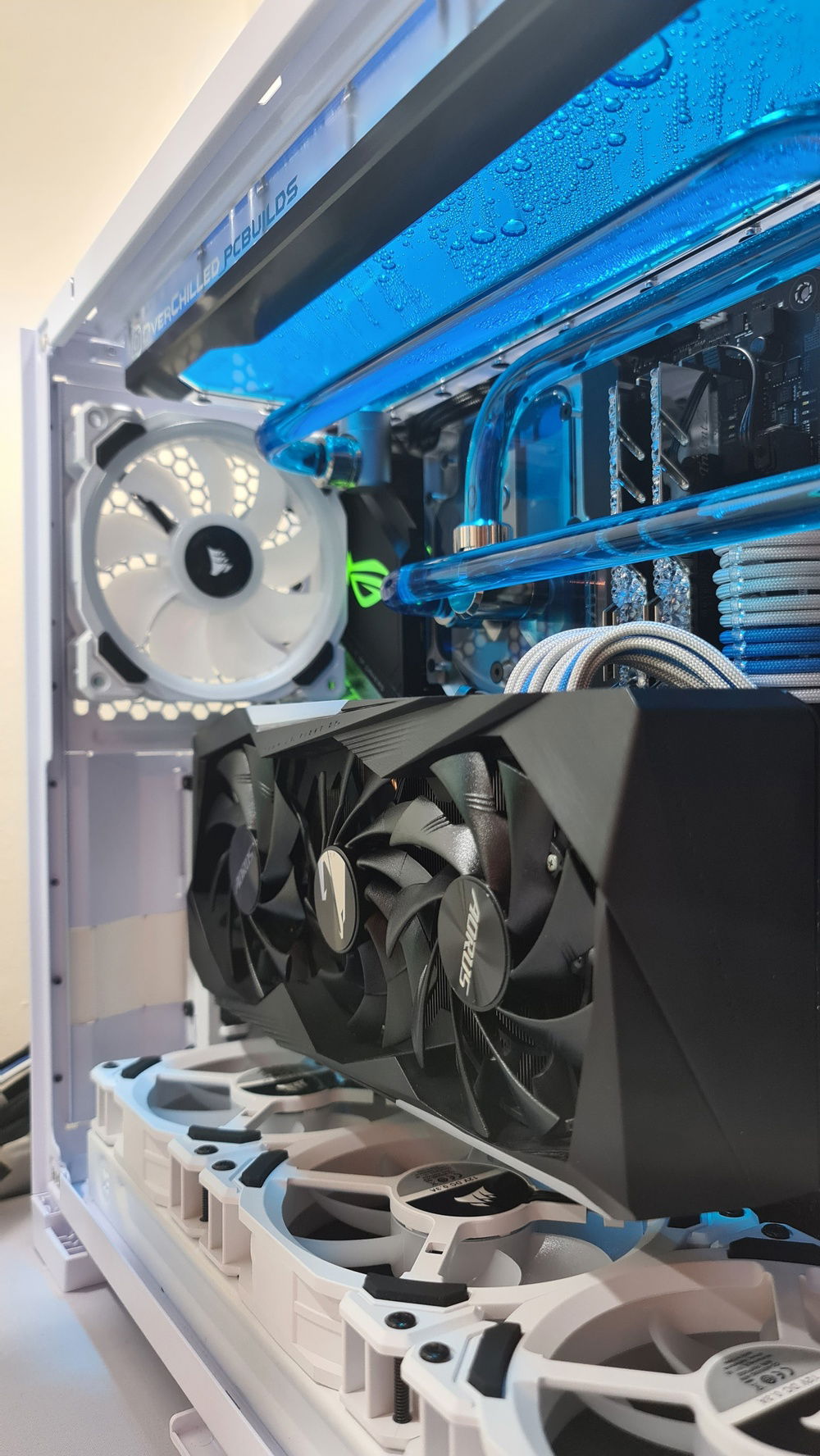 We have already preparing a re-design, with a new GPU, which will be included in the custom loop (Aorus 3080 Waterforce WB) , new fluid (mystic fog), front distro panel for the o11 mini (brand new) and a new set of 3 Corsair QL fans, Lian Li mini vertical white pcie4 kit and some new tubes. Finally there will be installed in the new edition of the mini, the snow edition and the 360 res along with the pump will be romoved.