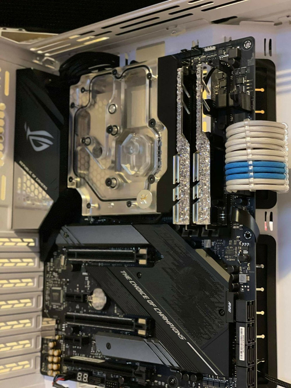 Also we choose the X570 Asus ROG E-gaming in order to install a monoblock instead of a cpu block.