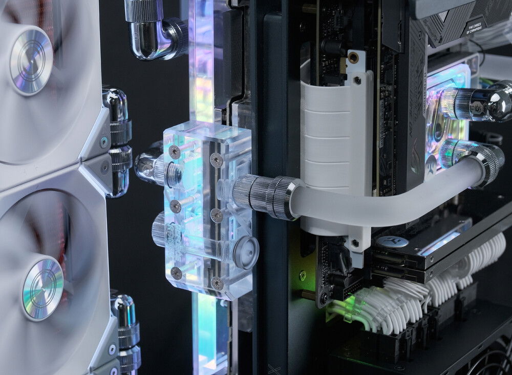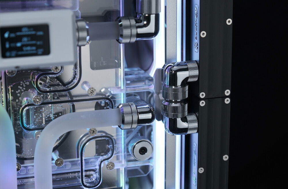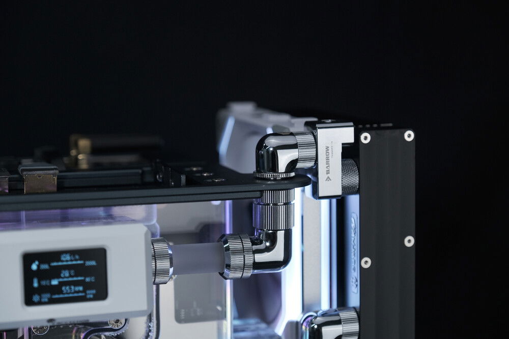 All the compression and 90 degree fittings are from Touchaqua Bitspower with exception of position adjustable fitting from Barrow.