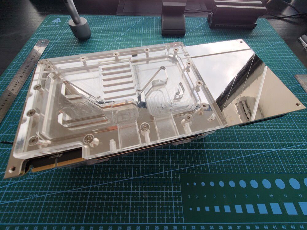 Custom made 3090 FTW 3 active backplate with 4mm copper plate and 10mm acrylic top