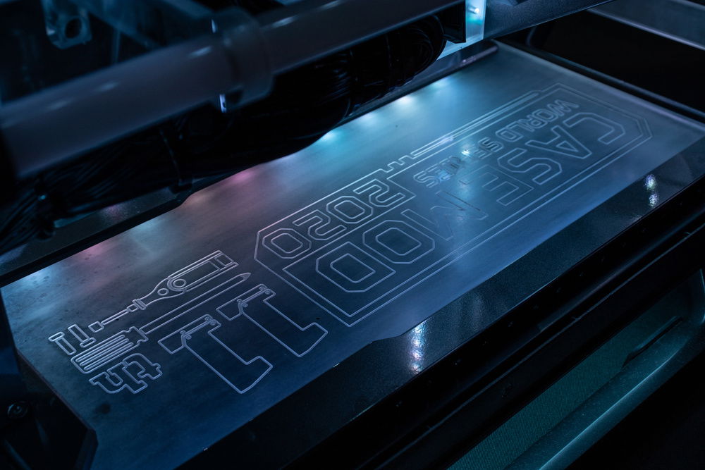 In the front I made some cutouts of pieces that fit perfectly in the front, I placed two acrylic sheets, the first to illuminate the sponsors, the second to give more prominence to the design and also to cover the leds that run throughout the front. Now that the spaces have been installed and determined, I started to assemble the main part. After positioning the parts and doing the function test, I placed the main structure assembled with the external structure also assembled, this helps in the final visualization of the project.