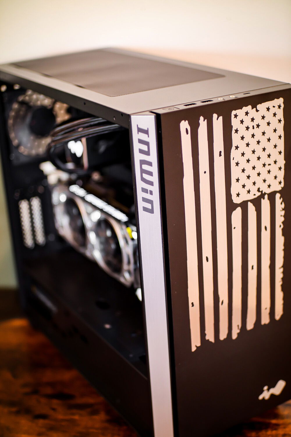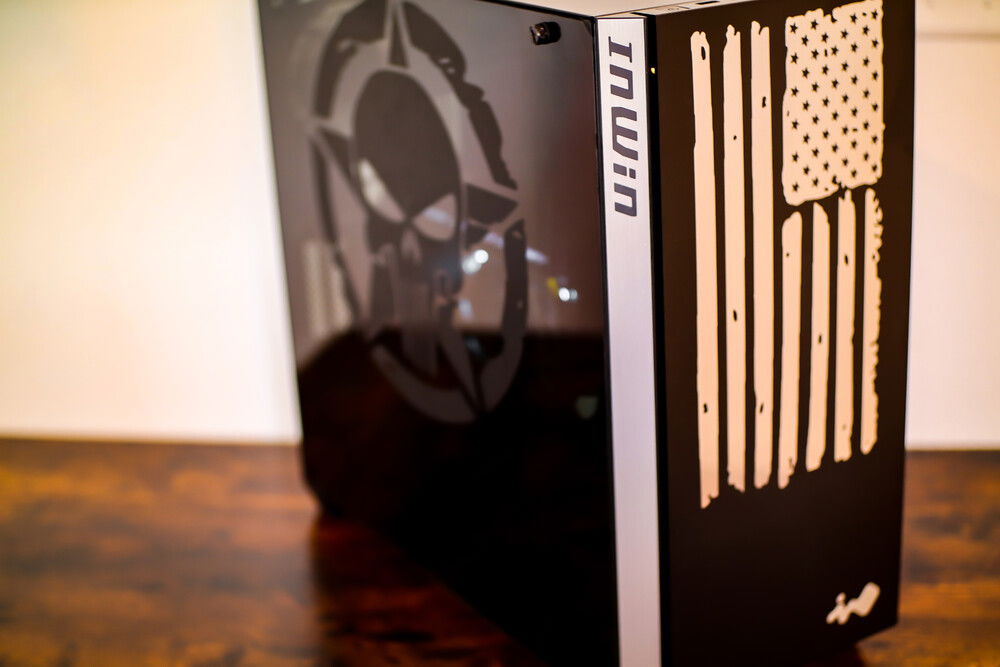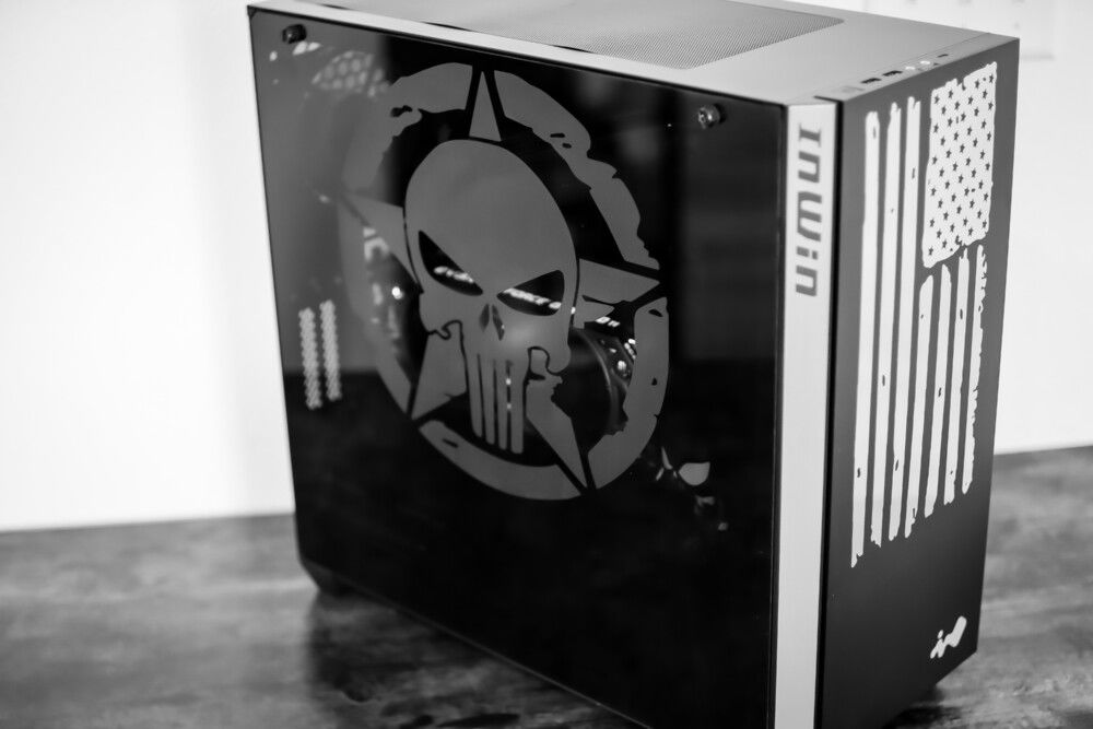 This PC was Punisher and Jeep enthusiast themed for a former Army Helicopter Mechanic.