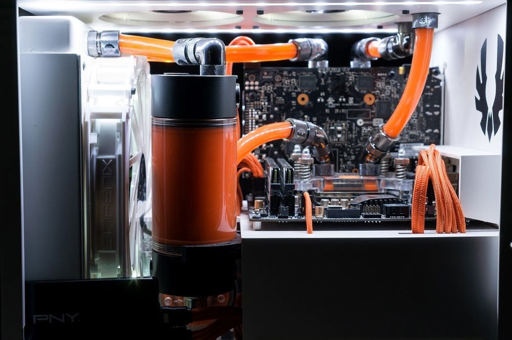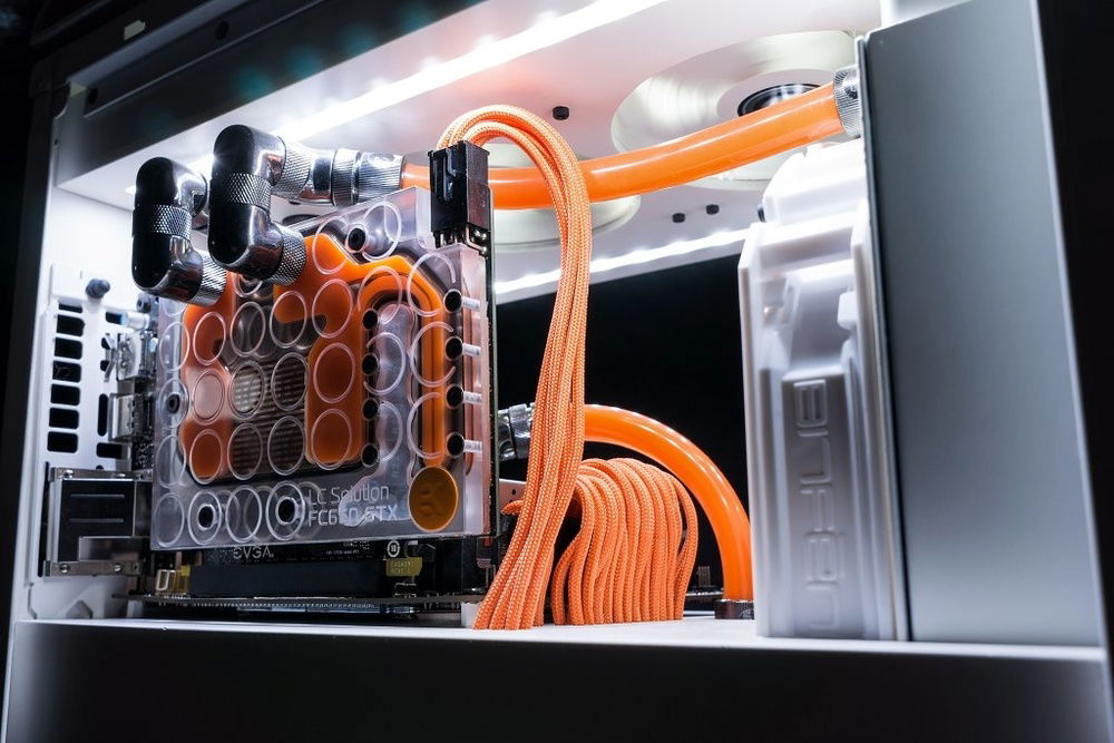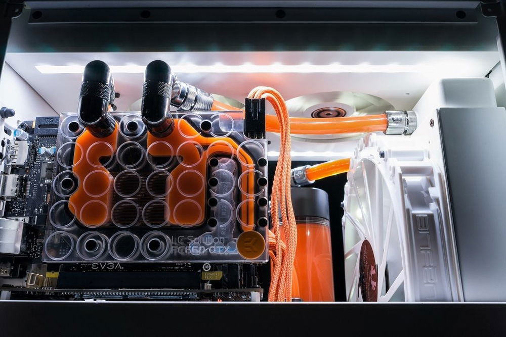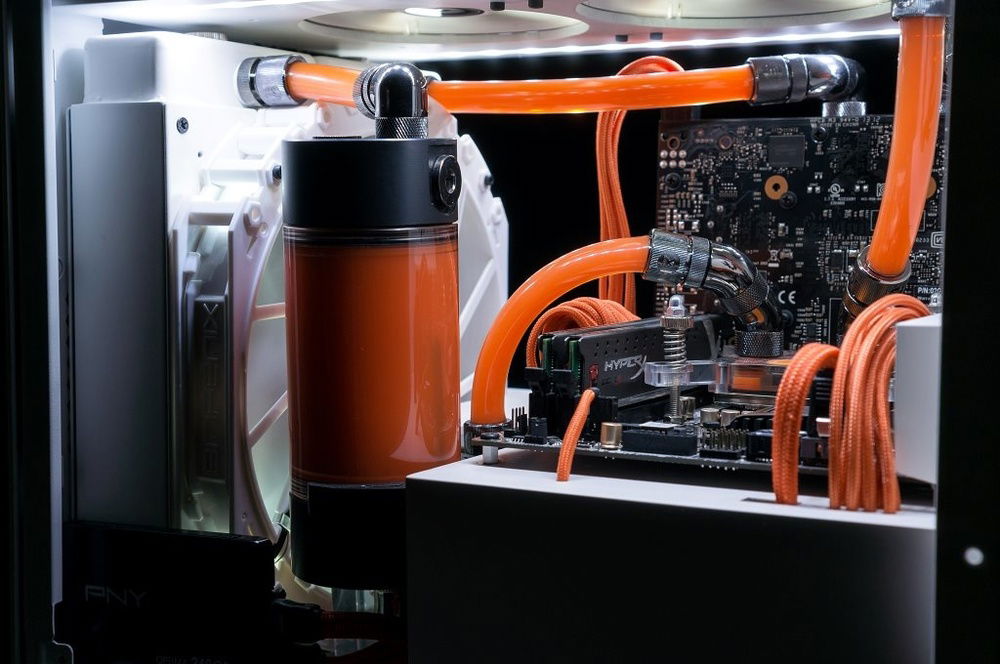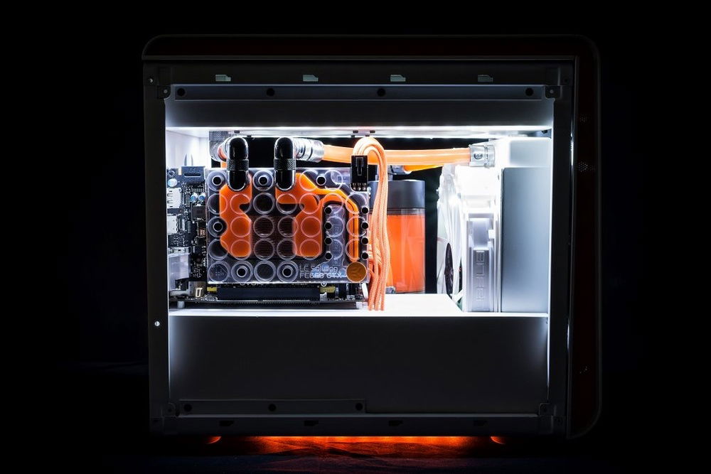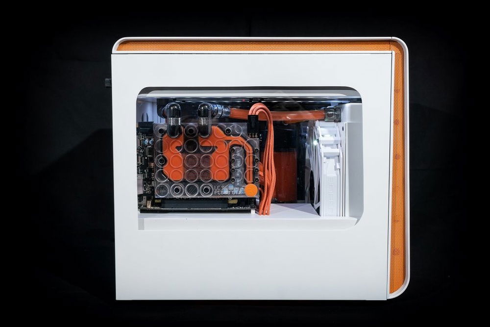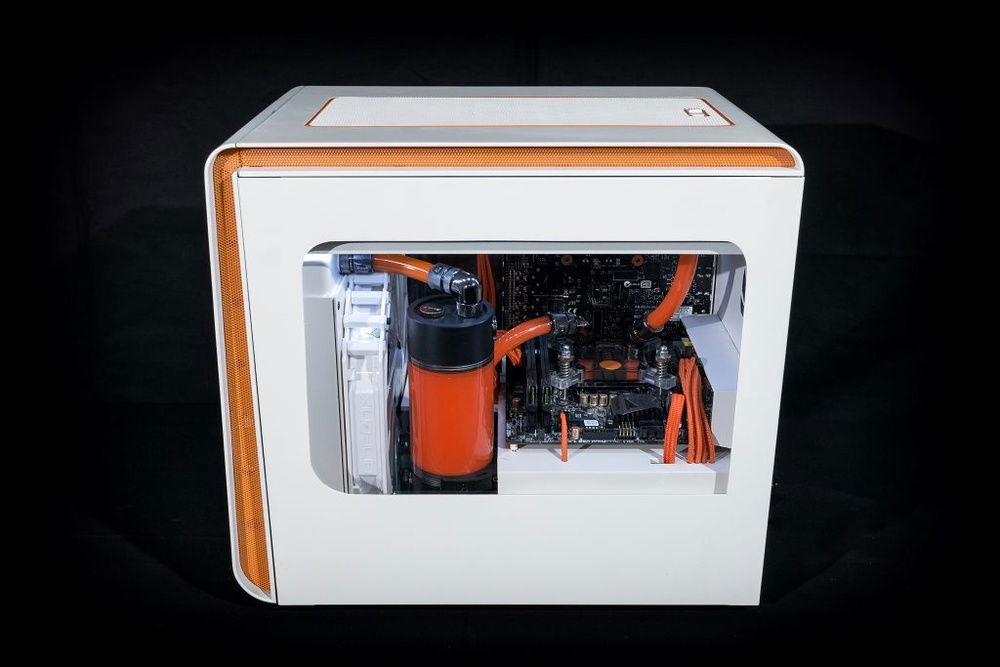 This mods goal was to make cleanest as possible build with watercooling and white and orange theme.