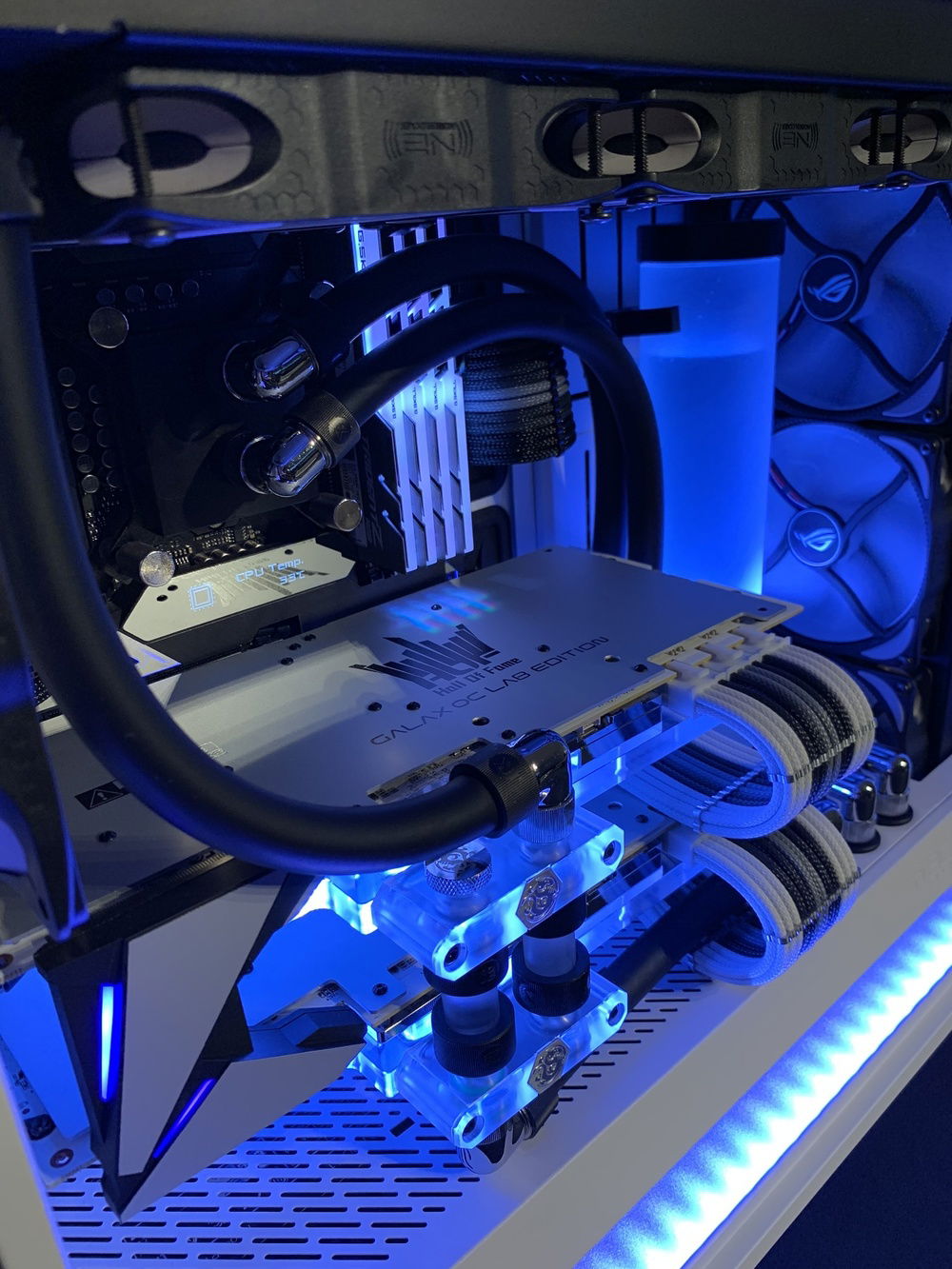 Cooling : Der 8auer oc-frame Ekwb PE 360 Radiators Ekwb DDC 3.2 PWM Elite Ekwb Supremacy Evo Ekwb RES X3 250 Ekwb ZMT Tubing Watercool Mo-Ra3 420LT (external)