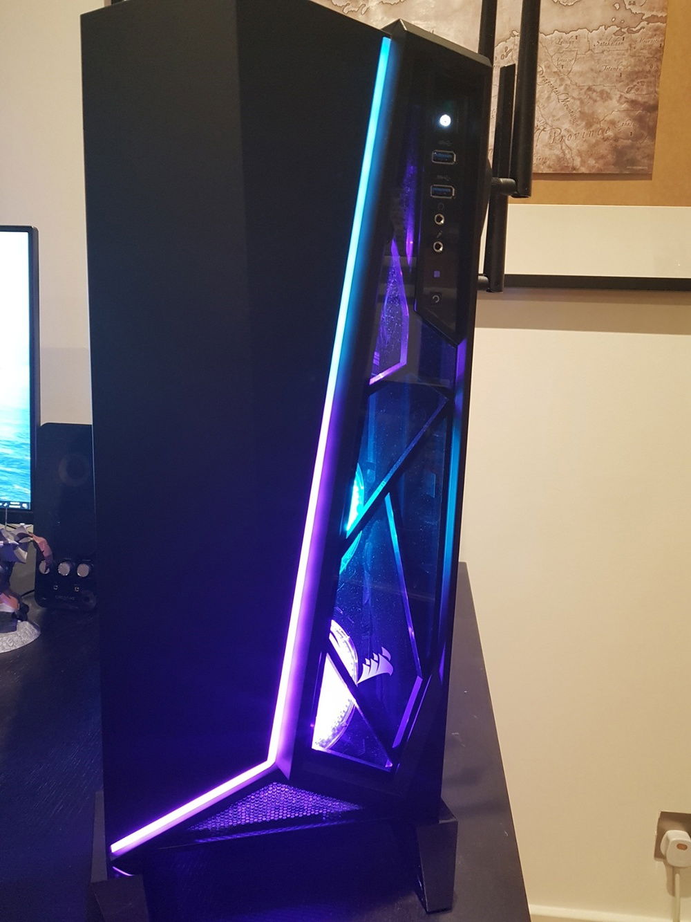 Almost entirely standard parts and components. I previously had the Corsair Spec-Alpha case, I removed it's stock PSU shroud and replaced it with an acrylic one I made and painted myself, which catches the lights from the HD120 fans and RGB strips nicely. The shroud is, however, a little too short for the Spec-Omega, so I plan on making a new one shortly with a similar design.