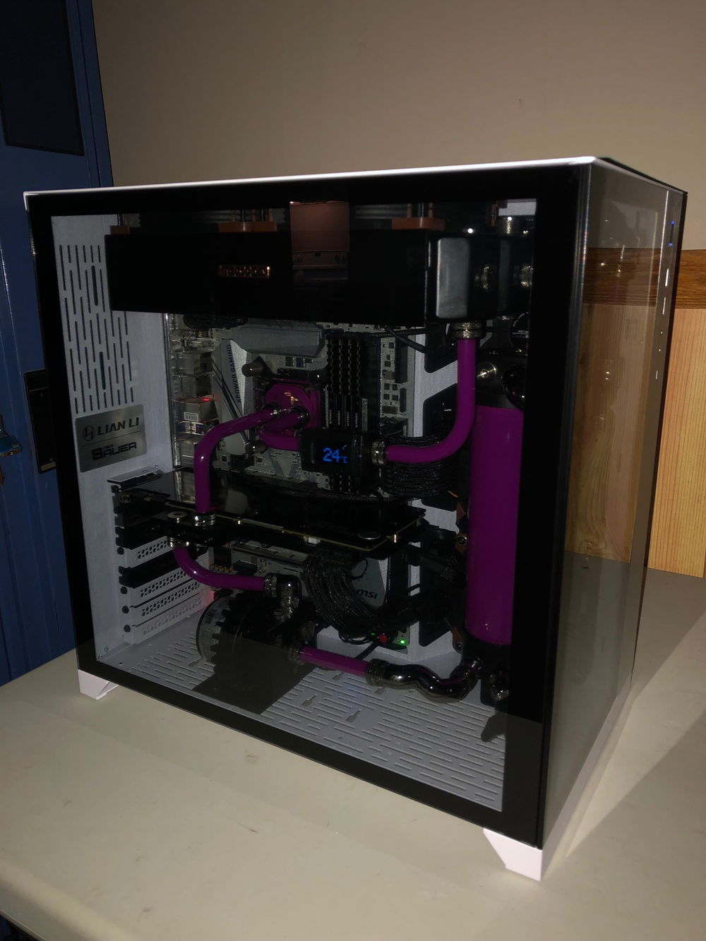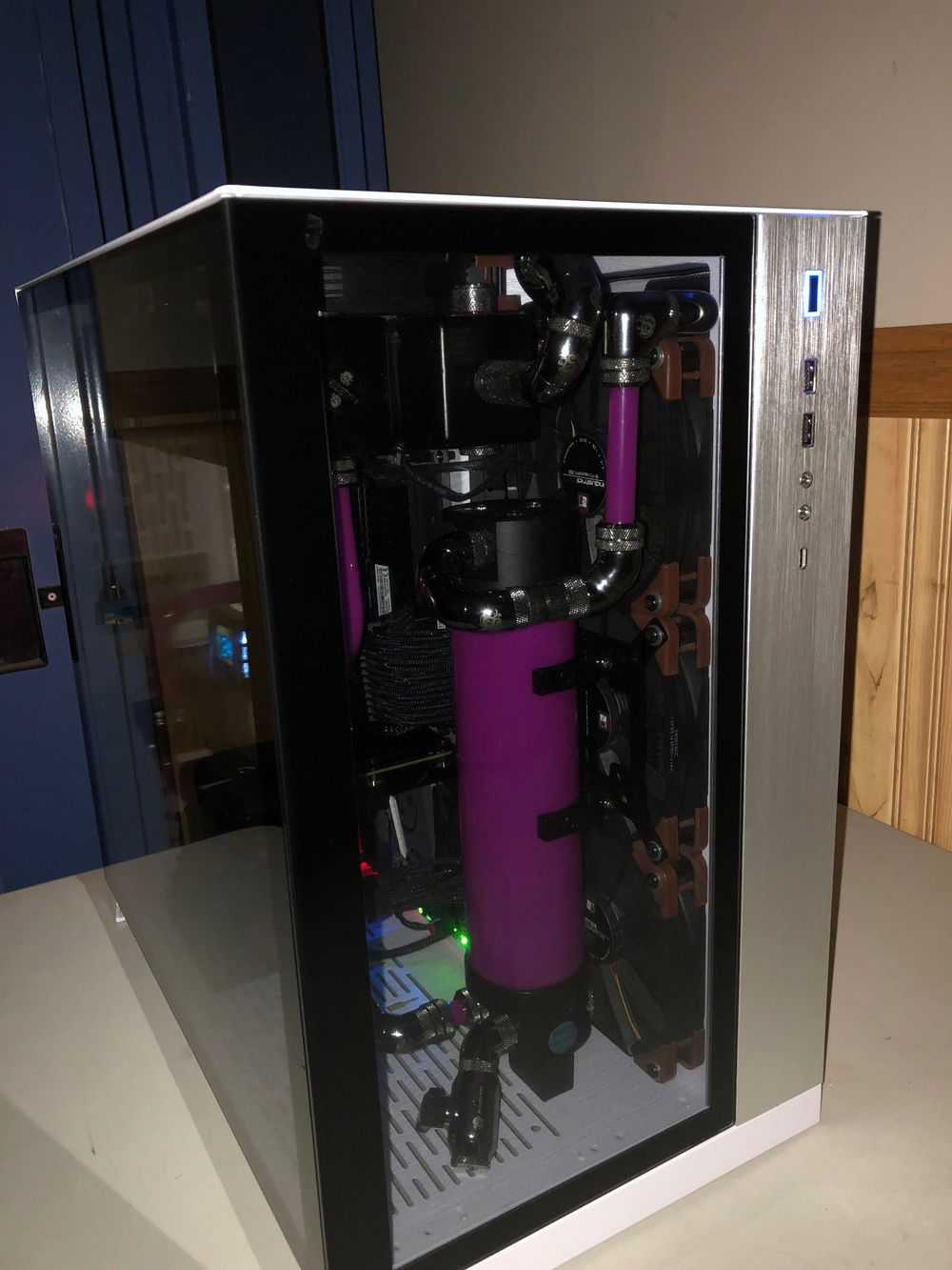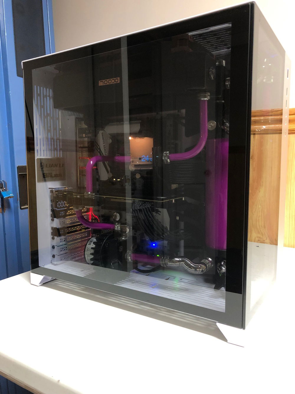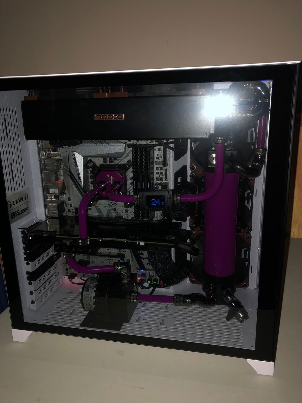 Custom hard tube loop with EK-CryoFuel Solid Electric Purple coolant.