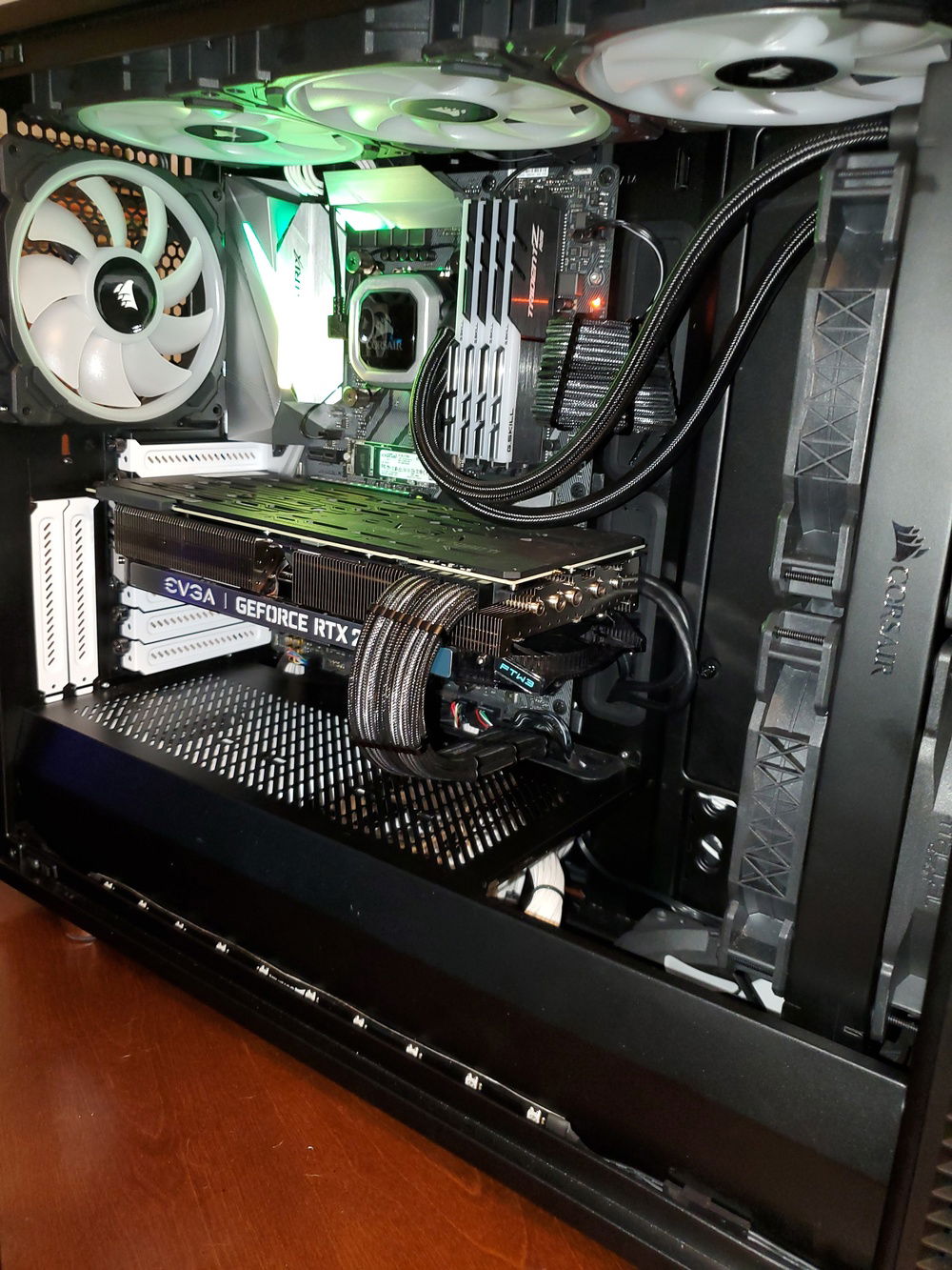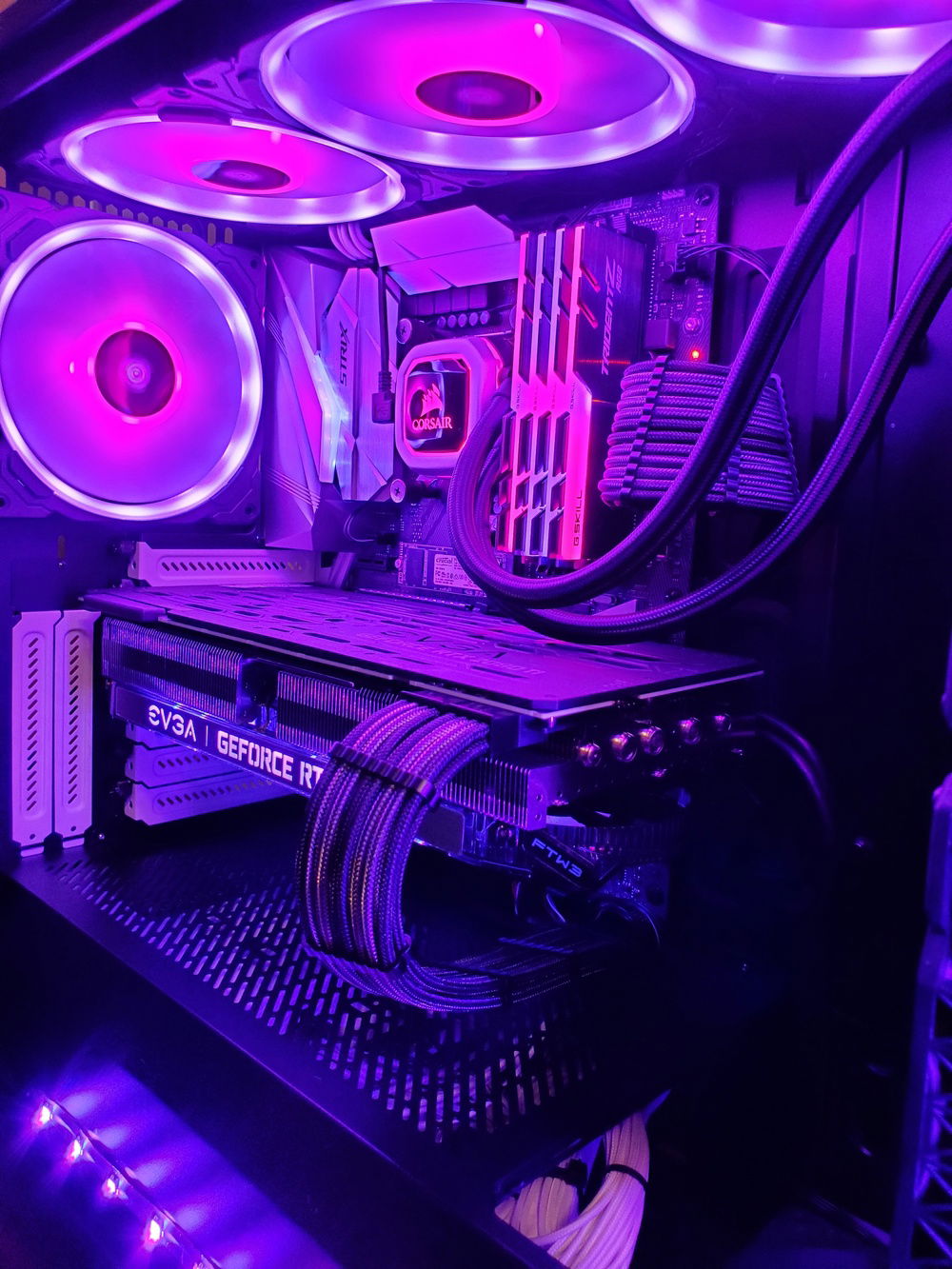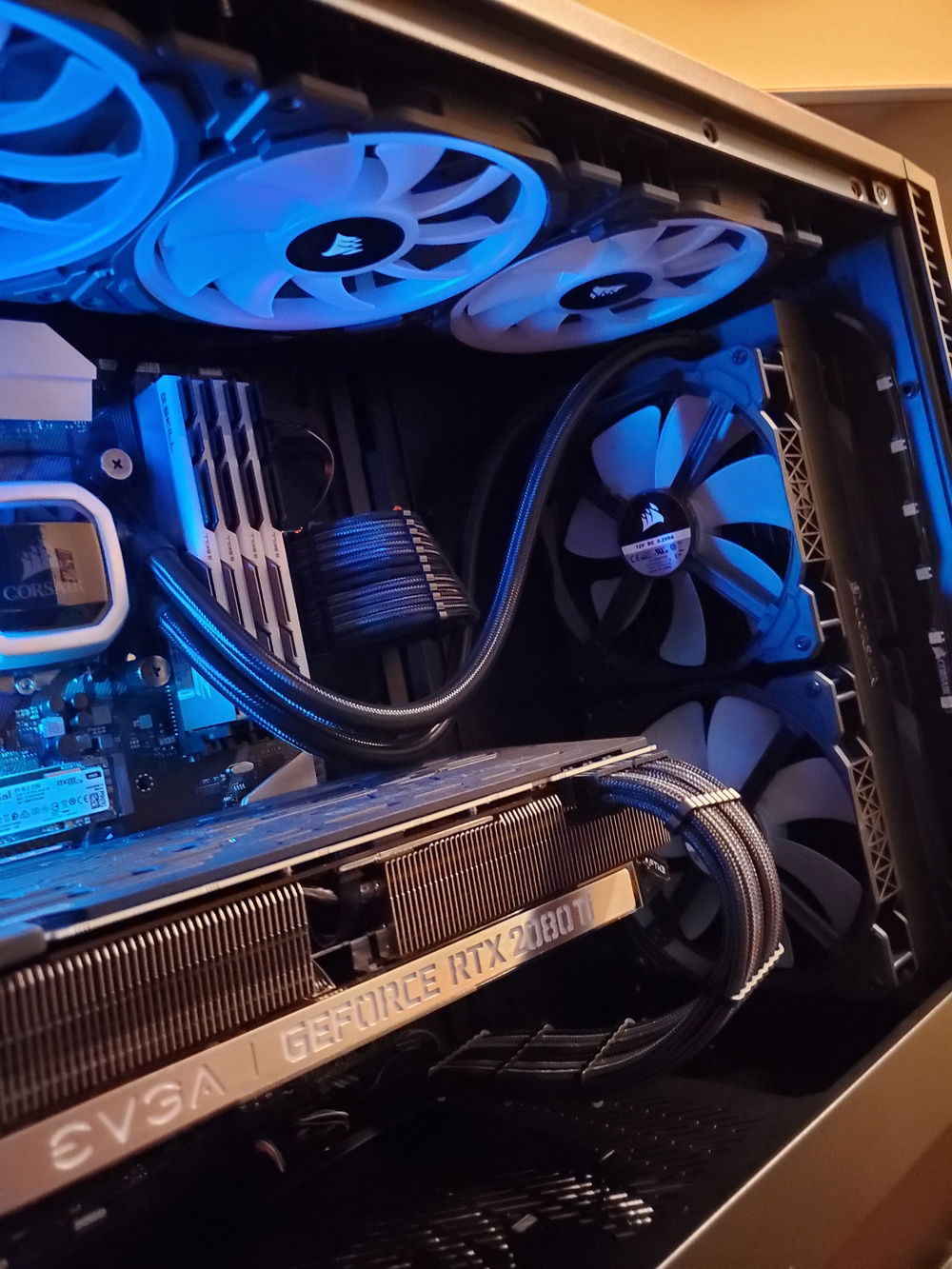 This is my first build. I started with a GTX 1080 FE for my GPU and a Cryorig R1 Universal CPU cooler but have since upgraded to the EVGA RTX 20801Ti FTW3 and to the Corsair H115i Pro AIO. I also used the Corsair RM850x PSU that came with really nice white braided cables but I eventually got tired of the way they looked so I upgraded to the custom cable extensions from CableMod and I love them. I am waiting on my custom 8 pin EPS cable to be shipped at this time to match the other two cables. I mainly use this rig for gaming and it completely blows everything I have thrown at it out of the water. I also used the Asus ROG Strix Z370-e Gaming motherboard and 32GB of G. Skill Trident Z RGB RAM. This build is a bit overkill since I really only use it for gaming and not editing or streaming. If there is anyone out there that would like to introduce me to the world of streaming and creating content hit me up!