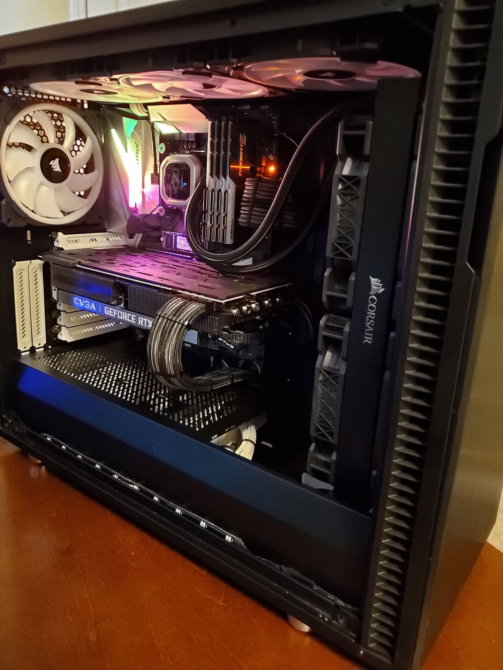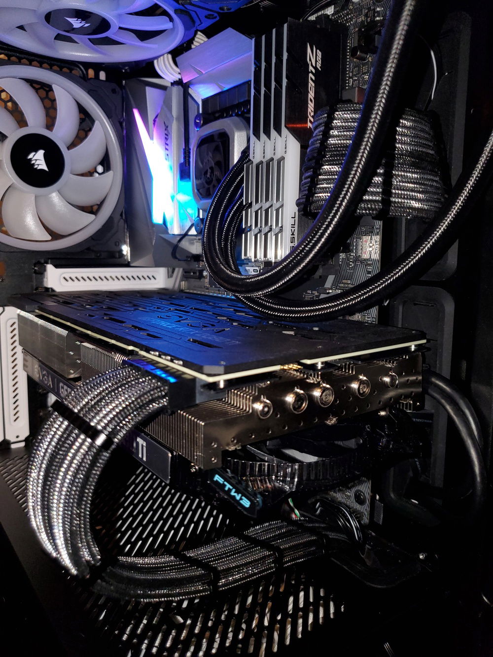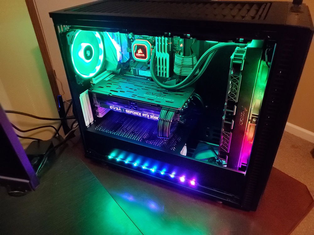 This is my first build. I started with a GTX 1080 FE for my GPU and a Cryorig R1 Universal CPU cooler but have since upgraded to the EVGA RTX 20801Ti FTW3 and to the Corsair H115i Pro AIO. I also used the Corsair RM850x PSU that came with really nice white braided cables but I eventually got tired of the way they looked so I upgraded to the custom cable extensions from CableMod and I love them. I am waiting on my custom 8 pin EPS cable to be shipped at this time to match the other two cables. I mainly use this rig for gaming and it completely blows everything I have thrown at it out of the water. I also used the Asus ROG Strix Z370-e Gaming motherboard and 32GB of G. Skill Trident Z RGB RAM. This build is a bit overkill since I really only use it for gaming and not editing or streaming. If there is anyone out there that would like to introduce me to the world of streaming and creating content hit me up!